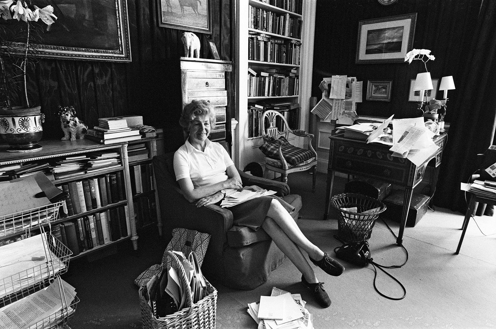 Deborah Cavendish, duquesa de Devonshire, fotografiada en su estudio en Chatsworth House, Derbyshire, el 30 de junio de 1976.
