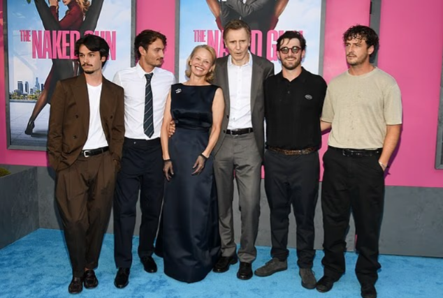 Ambos asistieron el lunes al estreno de la película en Nueva York, donde posaron con sus hijos Micheál Neeson, de 30 años, y Dylan Lee, de 27, confirmando la cercanía entre las dos familias.