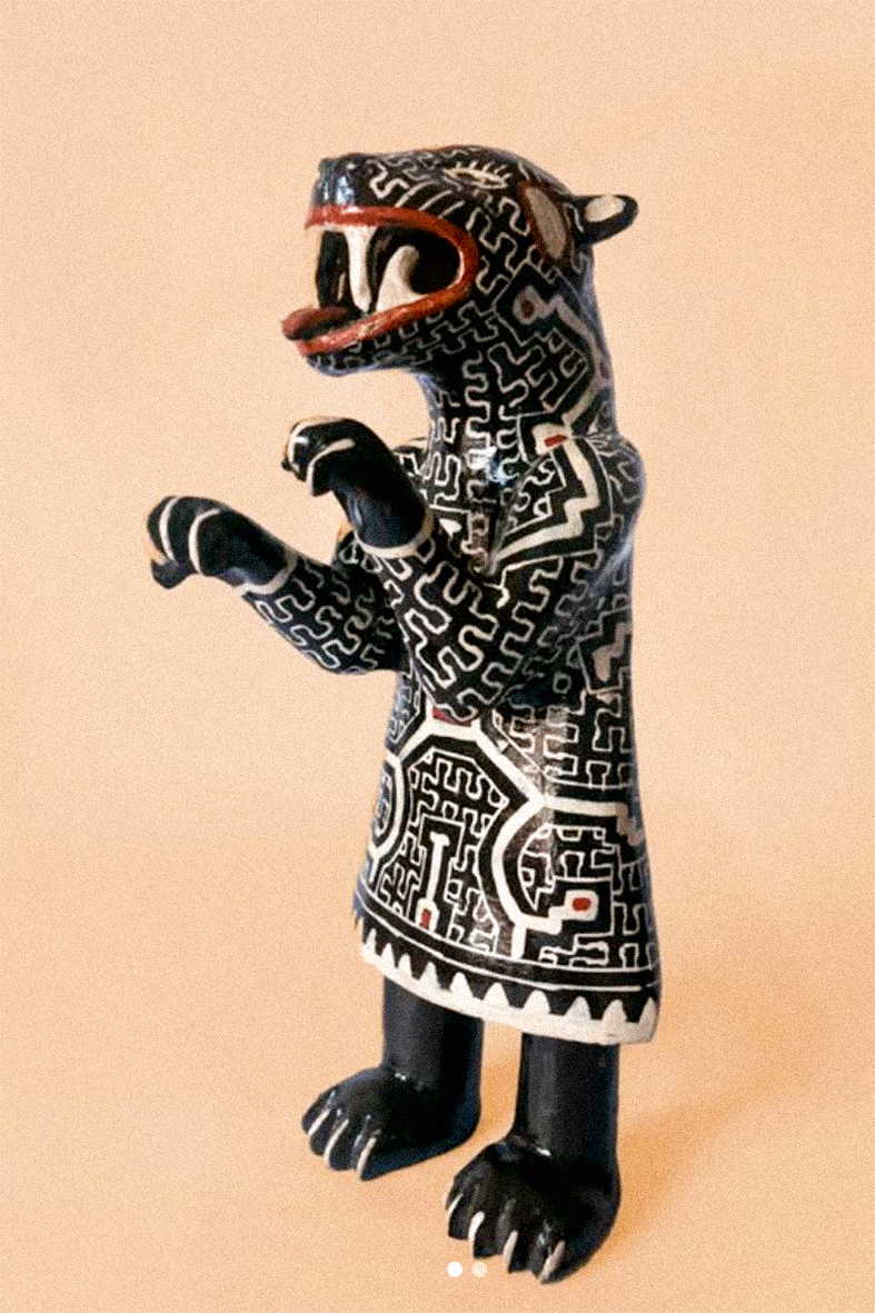 Piezas tradicionales awajun, shipibo-konibo y kichua modeladas y pintadas a mano.