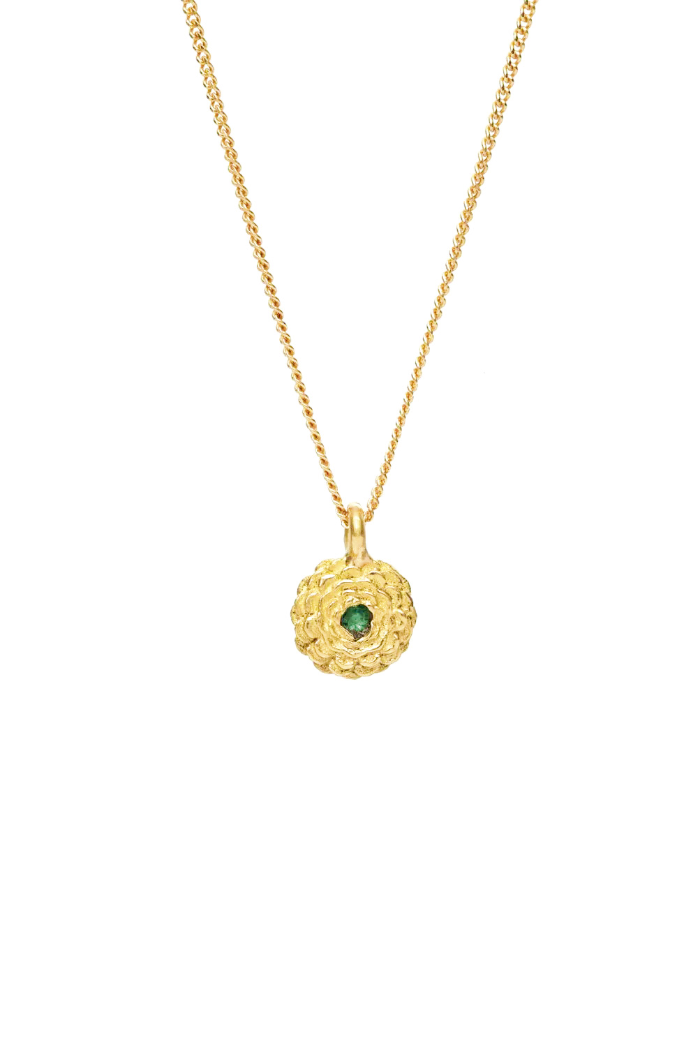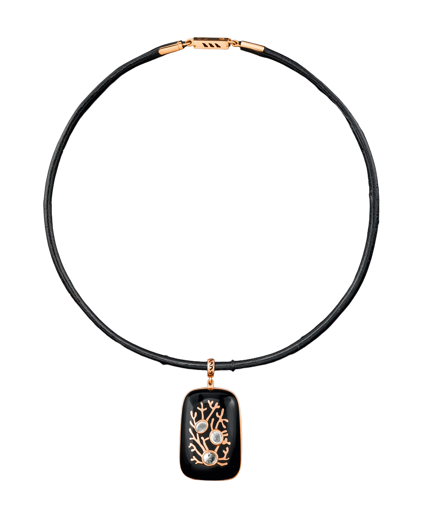 Colgante en oro rosa 18K con engaste de coral, polki diamonds y ojo de tigre azul.