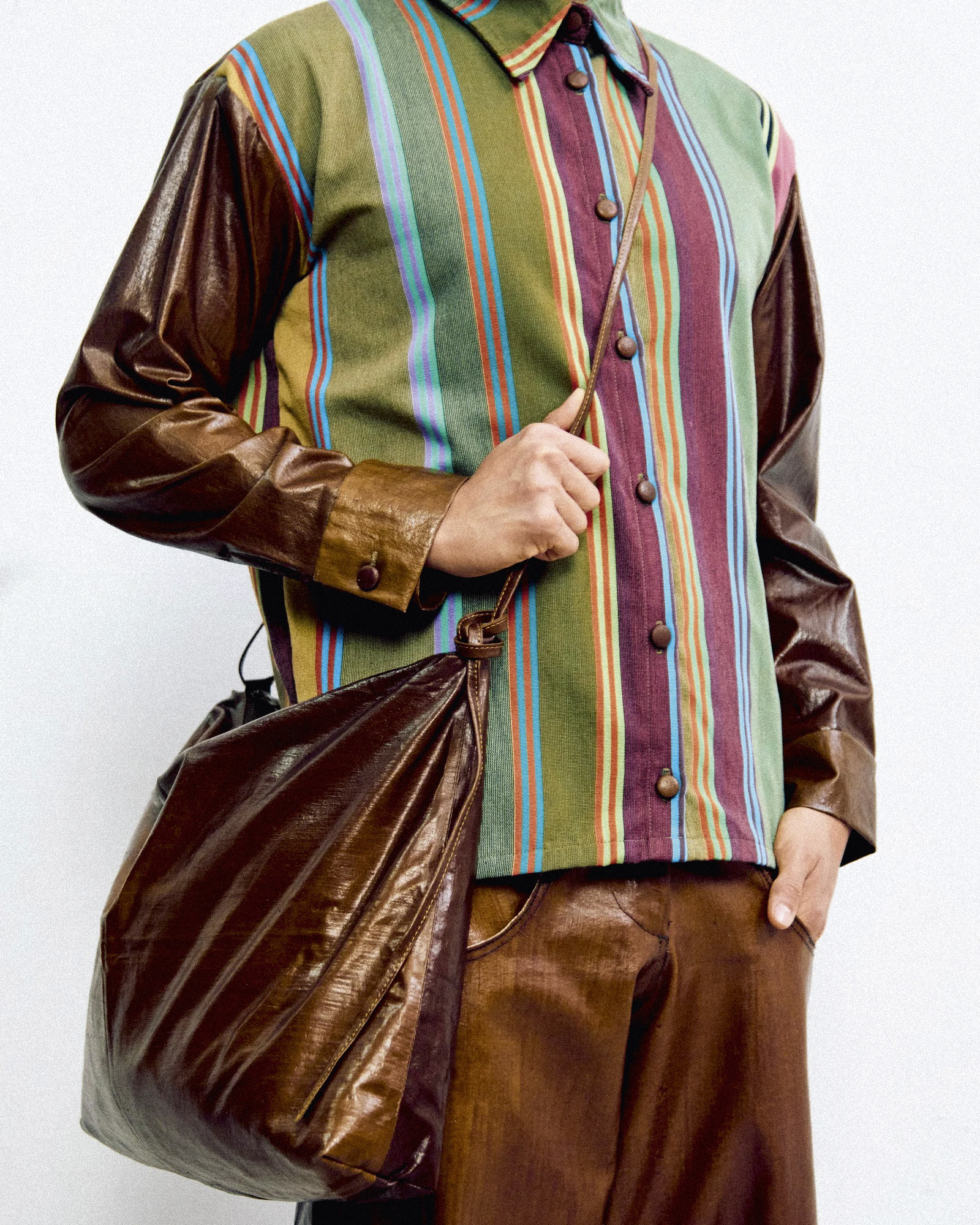 Crossbody bag artesanal en cuero de cacao (cuerpo vegano de residuos de masi.Earth). Impermeable y flexible.