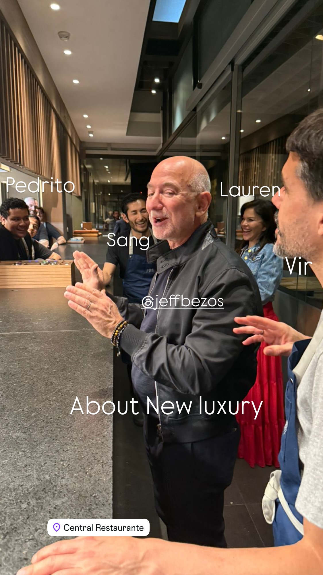 Uno de los puntos clave de su recorrido fue Central, restaurante de Virgilio Martínez y Pía León. En la cocina fueron recibidos por el chef Sang Jung, quien compartió en Instagram la emoción del equipo por atenderlos. “Nuestro equipo fue realmente feliz de cocinar para Jeff Bezos y Lauren”, escribió junto a una imagen del momento.