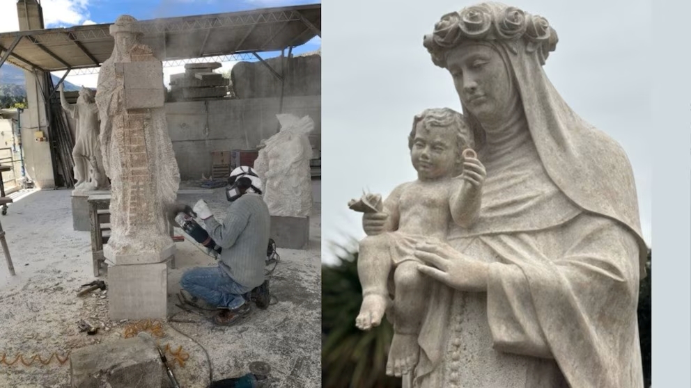 La estatua de Santa Rosa de Lima fue realizada por el joven escultor peruano Edwin Morales y elaborada íntegramente con travertino blanco de Huancayo, material de origen peruano. Foto: Vatican Media