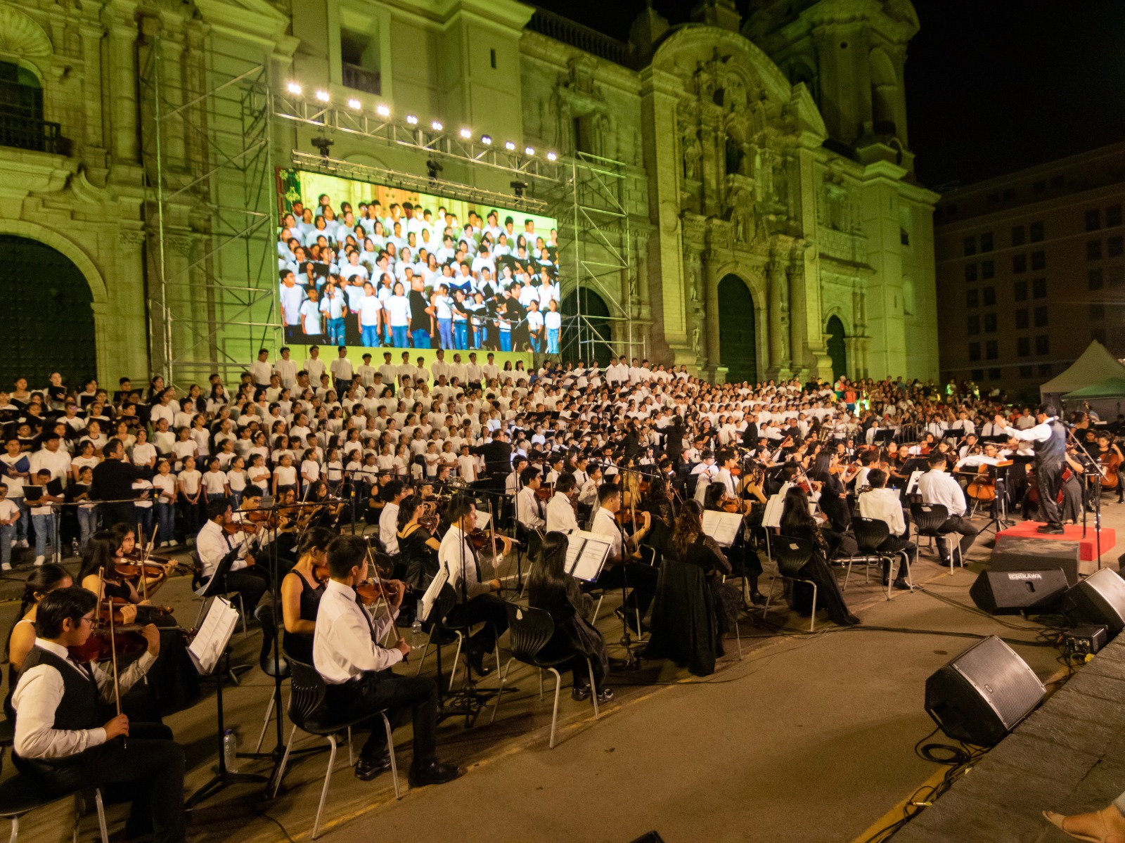 El concierto, que se realiza tradicionalmente en el atrio de la Catedral de Lima, marca el cierre de la jornada con una puesta en escena que combina música, espacio público y participación juvenil en torno a la celebración de la Pascua.