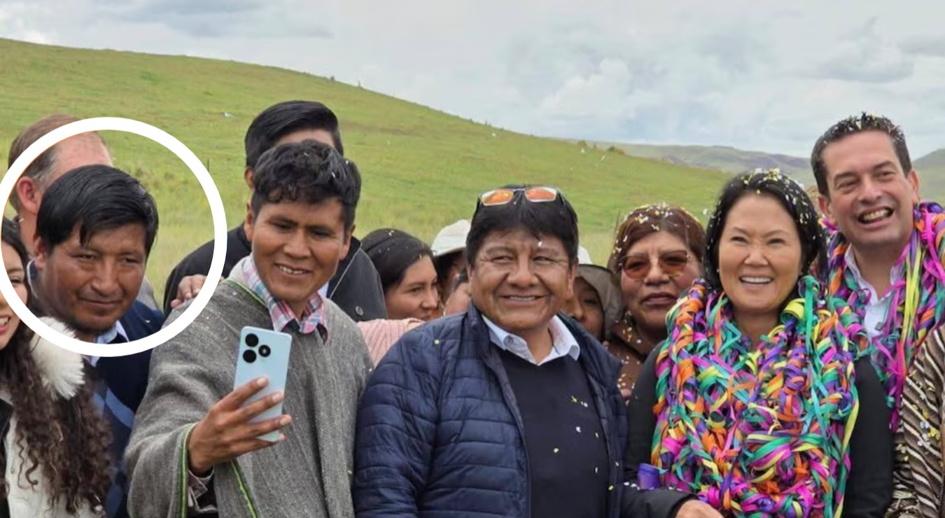 Imagen difundida muestra a Freddy Condori Yucra durante una actividad política junto a Keiko Fujimori en Macarí, lo que motivó la intervención comunal.