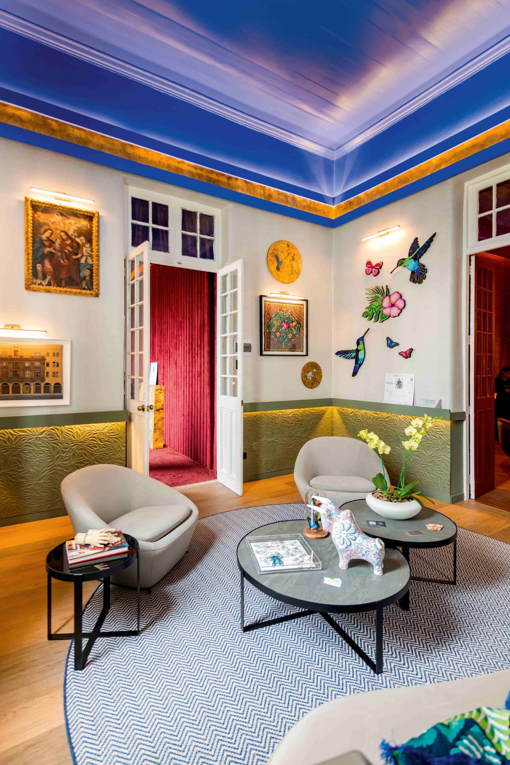 Augusto de Cossio diseñó un salón que evoca las casonas antiguas, en el que la arquitectura clásica convive con una selección curada de arte contemporáneo.