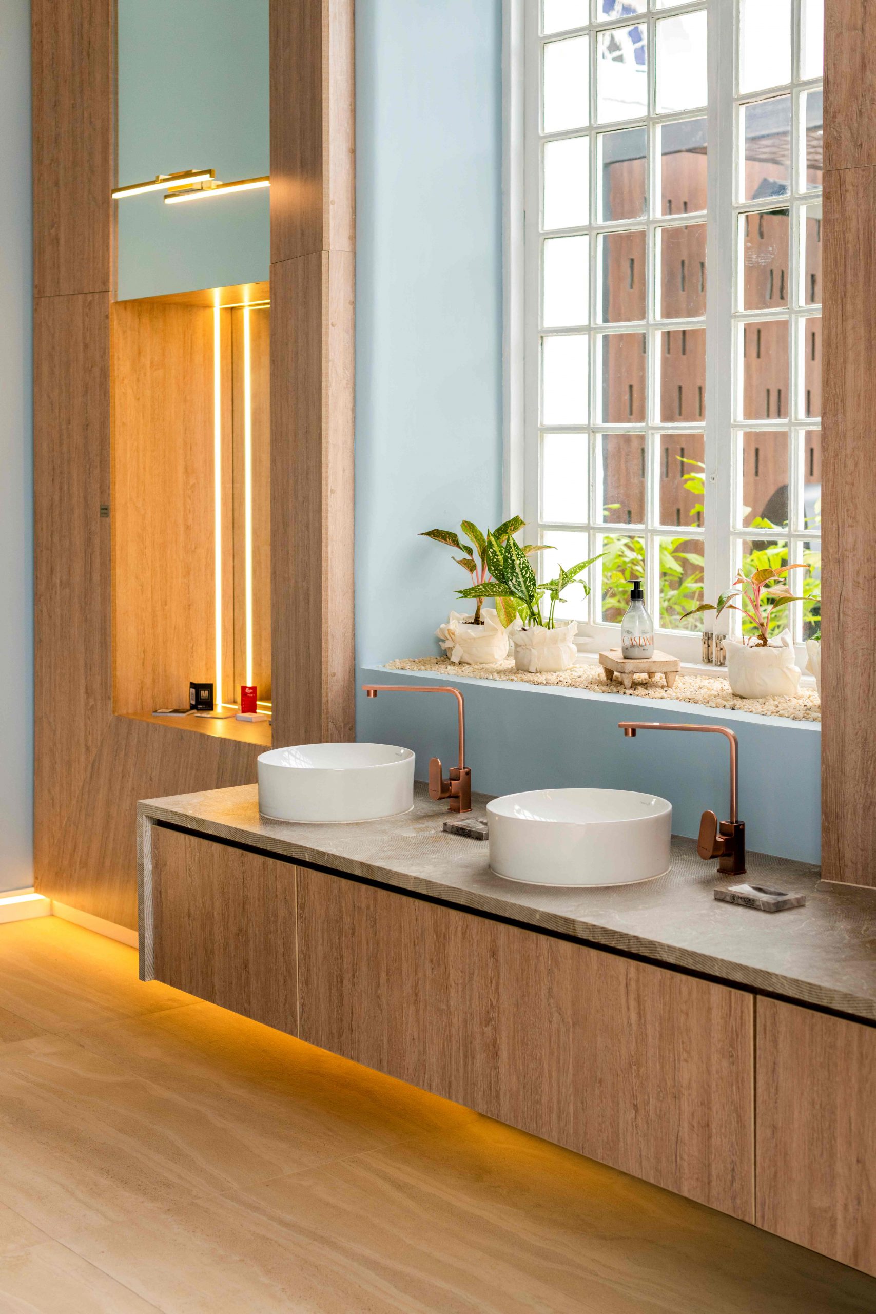 Porcelanatos itaianos de Cassinelli, lavados y griferías de Trébol.