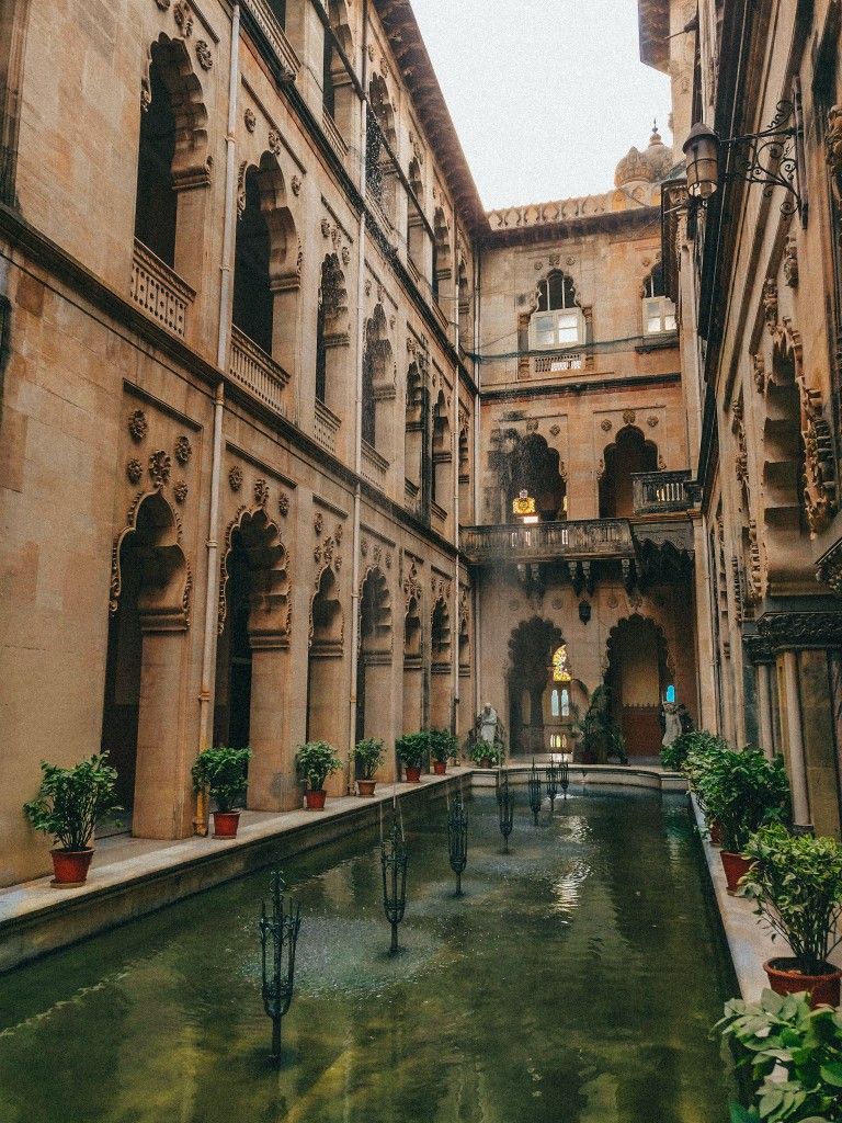 Su diseño combina elementos góticos, victorianos e indo-sarracenos.