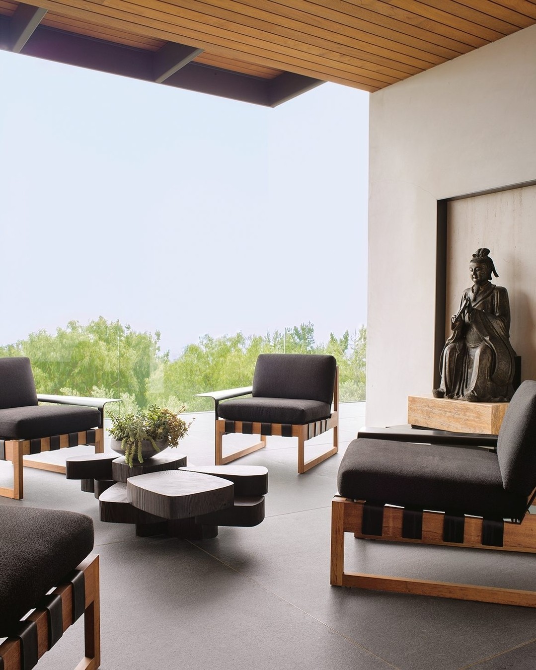 La decoración se con plementa con concreto pulido, biombos japoneses antiguos y obras de artistas como Adolph Gottlieb, Robert Motherwell y Glenn Ligon.