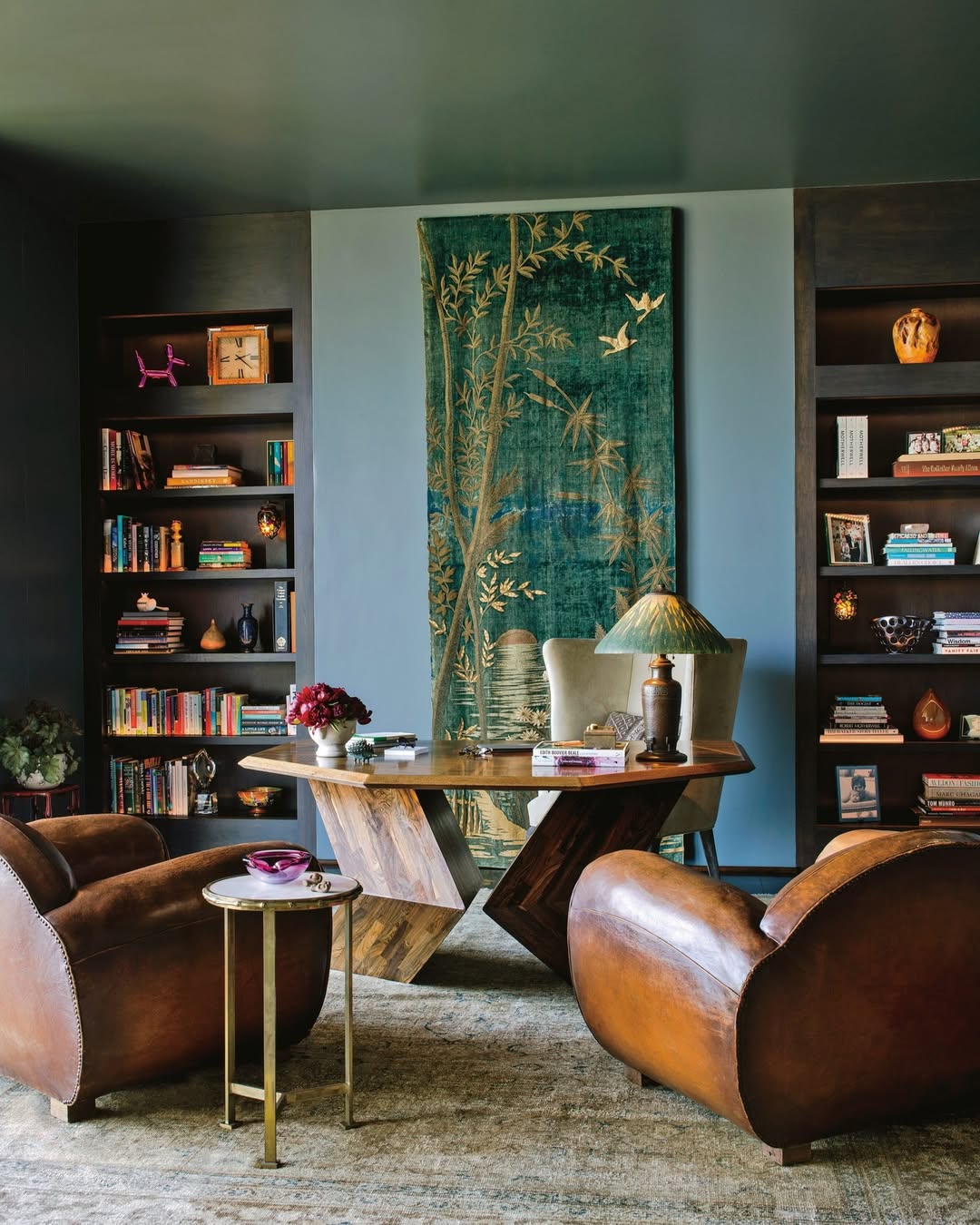 La reforma incluyó la sustitución de un acceso dramático —con una puerta roja de gran tamaño— por un diseño más acorde a su estilo. El interior, que Aniston describe como una fusión de “Viejo Mundo y Nuevo Mundo”, combina tapices pintados a mano, muebles de mediados del siglo XX, alfombras de seda.