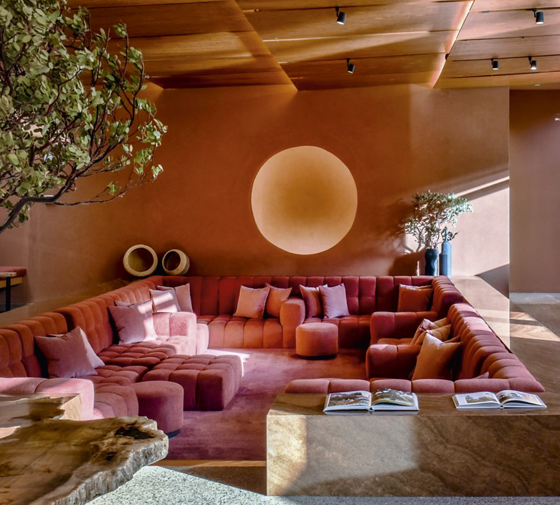 La iluminación tiene un lugar clave en el diseño de interiores este año. Lámparas escultóricas, piezas colgantes de gran escala o sistemas de luminarias protagonizan las estancias, crean atmósferas y delimitan zonas del hogar. El Spa Mii Amo, ubicado en Sedona (EE. UU.), resume bien este concepto.