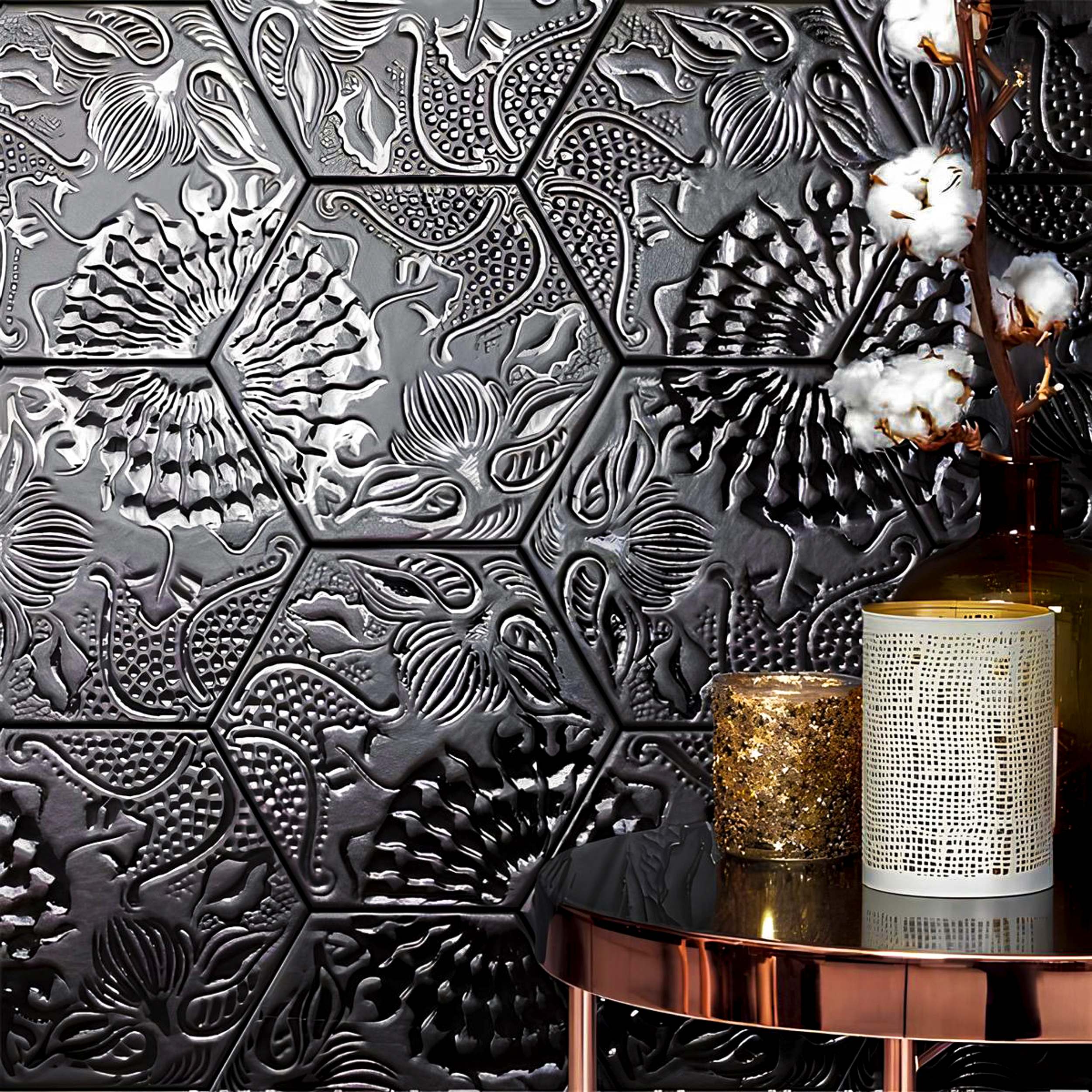 La loseta de concreto modelo Shell se caracteriza por ser monocromática y de forma hexagonal, sin elementos de color en su diseño. En su lugar, utiliza relieves que permiten que la luz y las sombras generen un efecto dinámico en el piso, lo que representa un valor agregado. Cada loseta incluye un diseño en el que se aprecian motivos marinos como estrellas de mar, fósiles y algas. Es un piso altamente versátil, perfecto para ambientes como terrazas, patios y balcones, o exteriores como veredas, dada su resistencia mecánica. Te esperamos en Rome Stones & Floors.