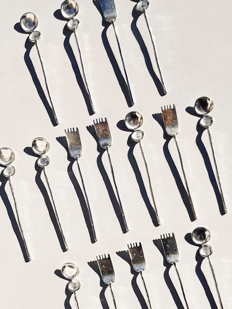 Juego de cubiertos Seven Ball en latón bañado en plata de Jessi Burch.
