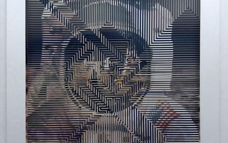 La lámpara suspendida, una estructura blanca con formas orgánicas, crea un punto focal luminoso que define el ambiente. Una obra de arte pop en gran formato introduce color y energía, mientras la consola de espejos, acompañada de jarrones altos y arreglos florales, aporta equilibrio y simetría relajada.