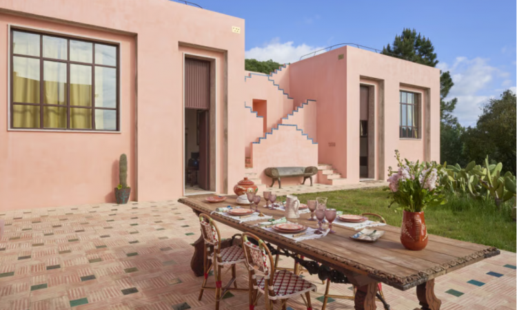 La Salvada la villa rosa de Christian Louboutin es un poema visual entre rice paddies y el Atlántico portugués.