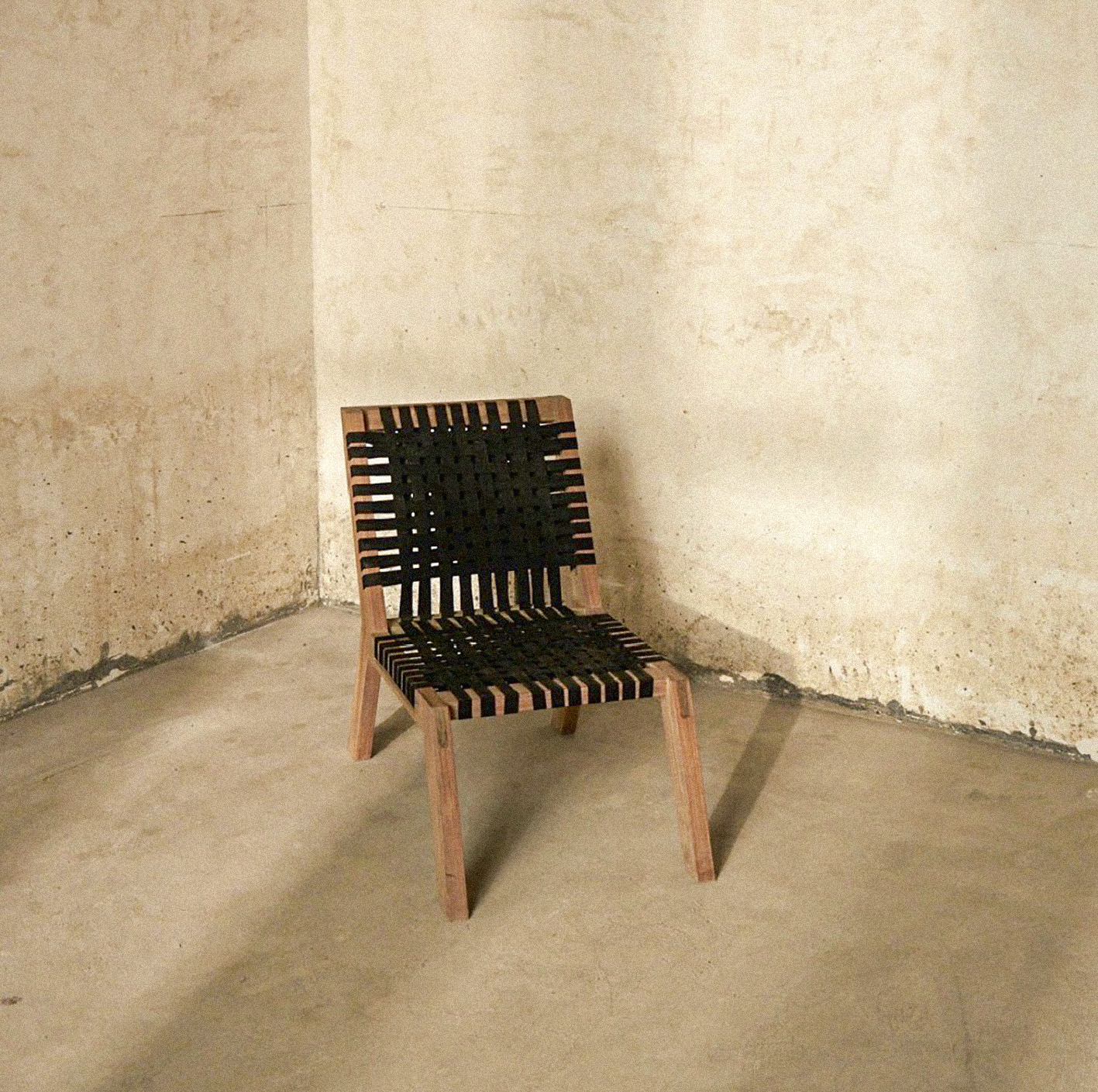 De Greensalt Studio. Silla con estructura moderna y asiento tejido. A pedido.