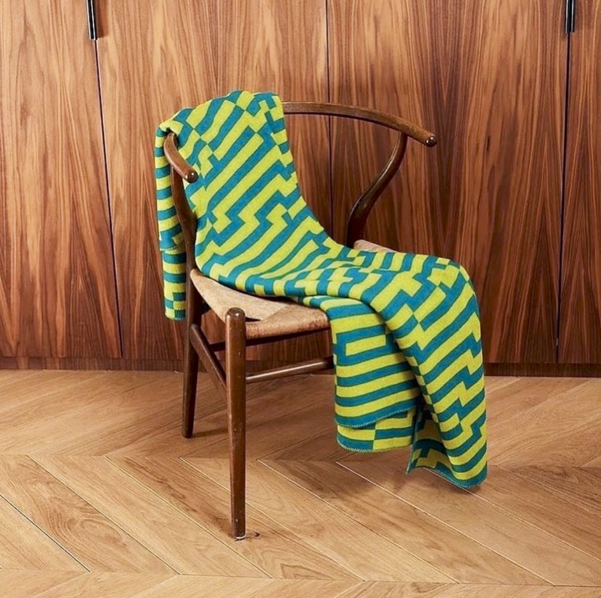 De Tregua Espacio. Manta de lana merino con patrón pixelado tejida en jacquard.