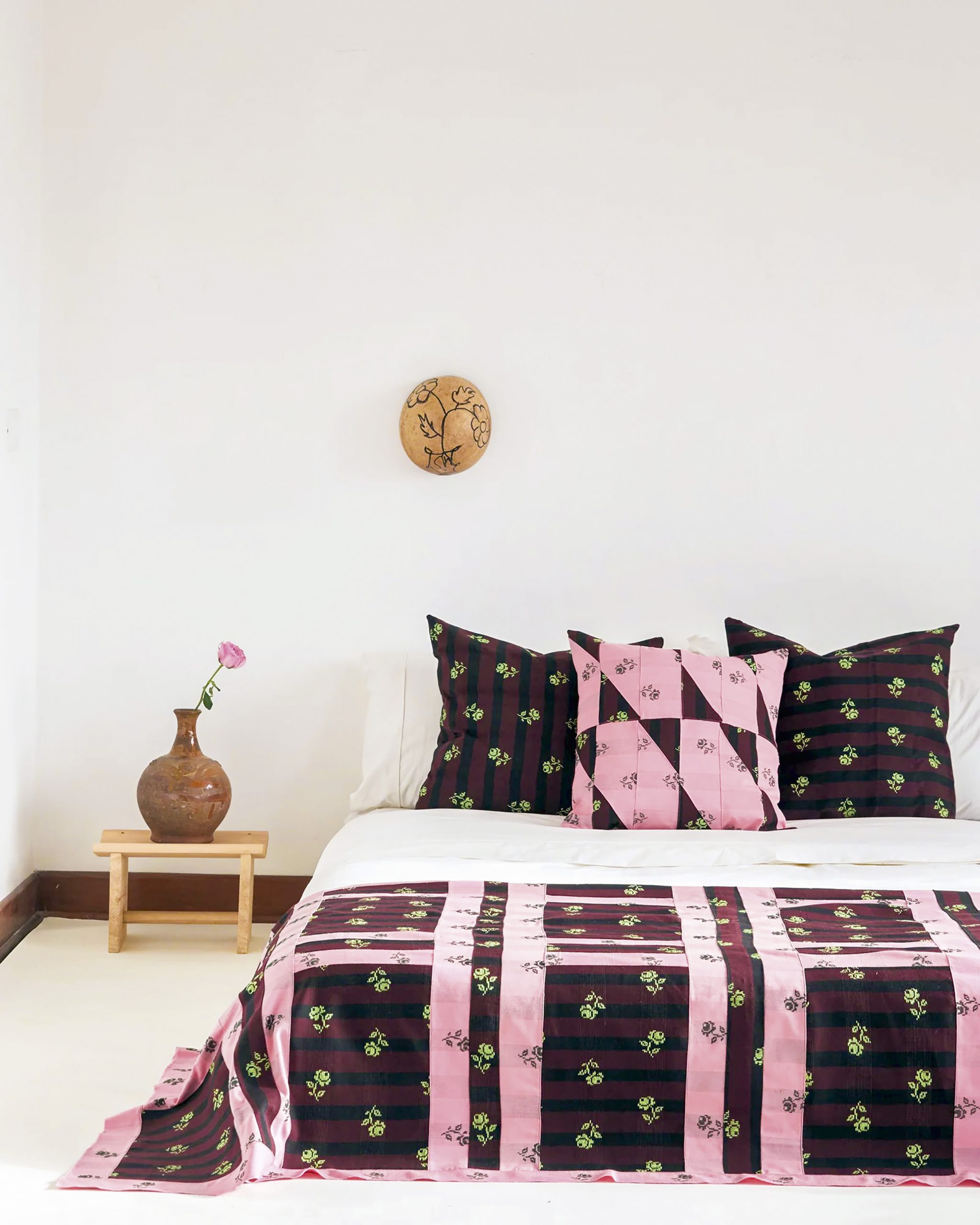 De Mozdeh Matin. Manta de patchwork en tonos burdeos.