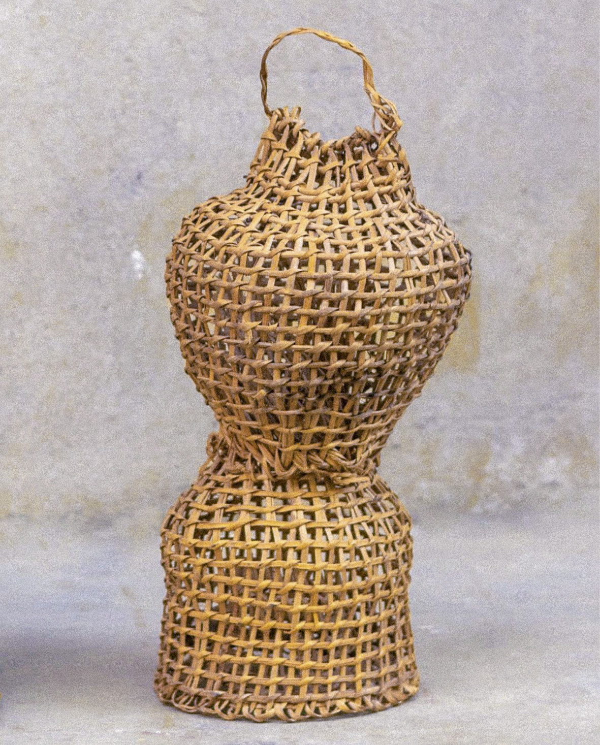 De Jane Artisans. Trampa desmontable tejida de tamshi (Heteropsis jenmanni) para pescar cangrejos. En el interior se pone el fruto del pijuayo o del umari como carnada. A pedido.