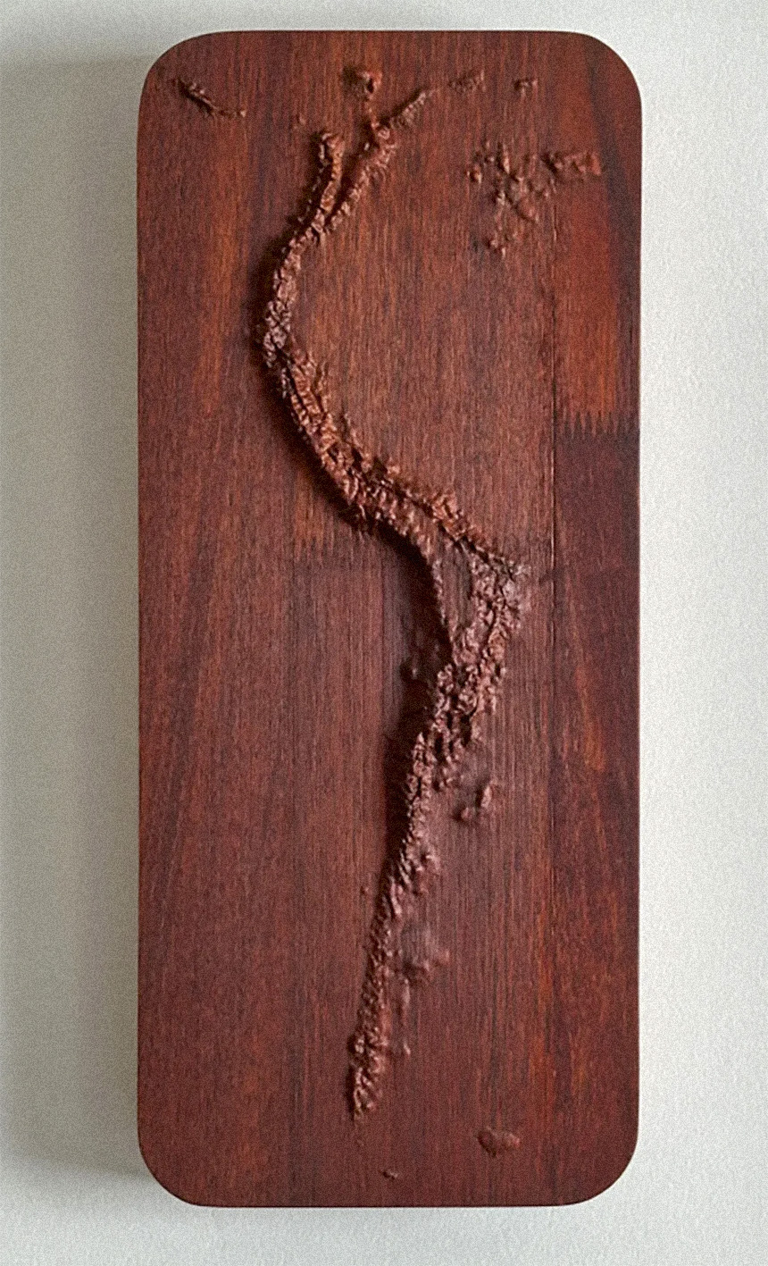 De Winsu. Escultura contemporánea que representa la topografía andina tallado en madera sólida de Pumaquiro, una especie de alta densidad y gran resistencia.