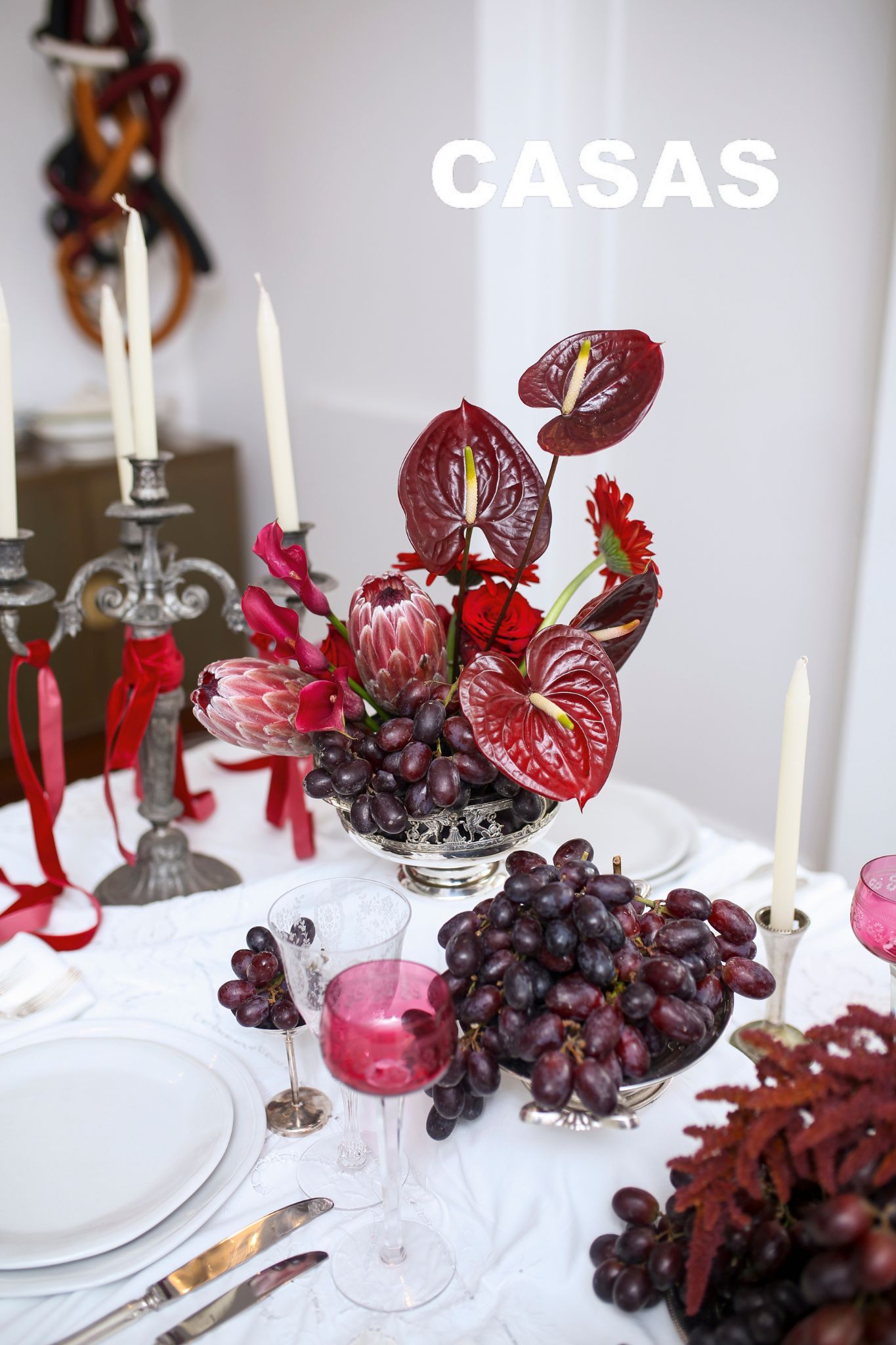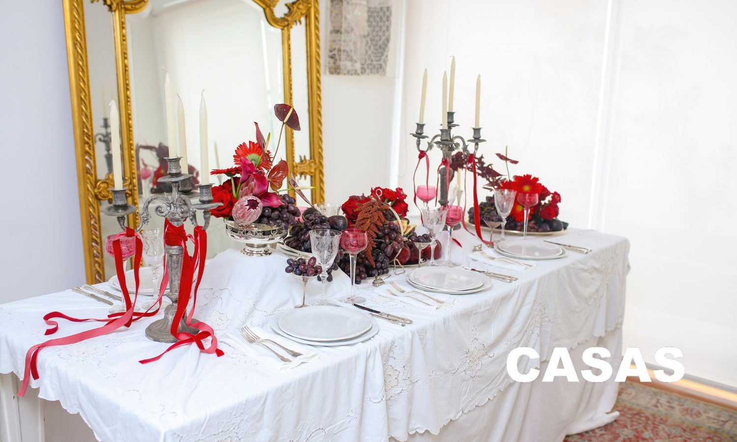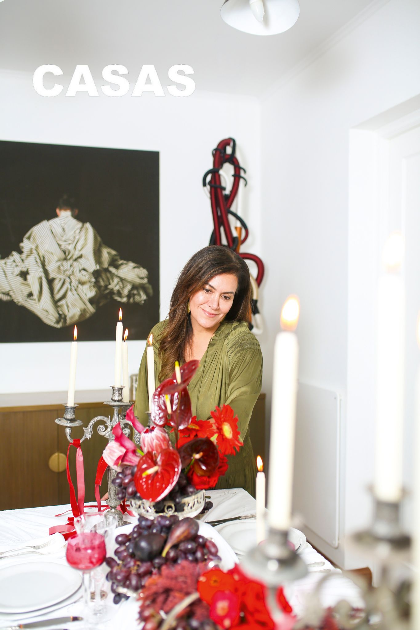 El resultado es un estilo propio que combina lo moderno con lo antiguo: platos contemporáneos y elementos desestructurados conviven con manteles y piezas heredadas o rescatadas en mercados de antigüedades. En cuanto a colores, confiesa una debilidad especial por los rojos y los blancos –incluidos todos sus matices: guinda, bordeaux– que le dan calidez y elegancia a la vez.