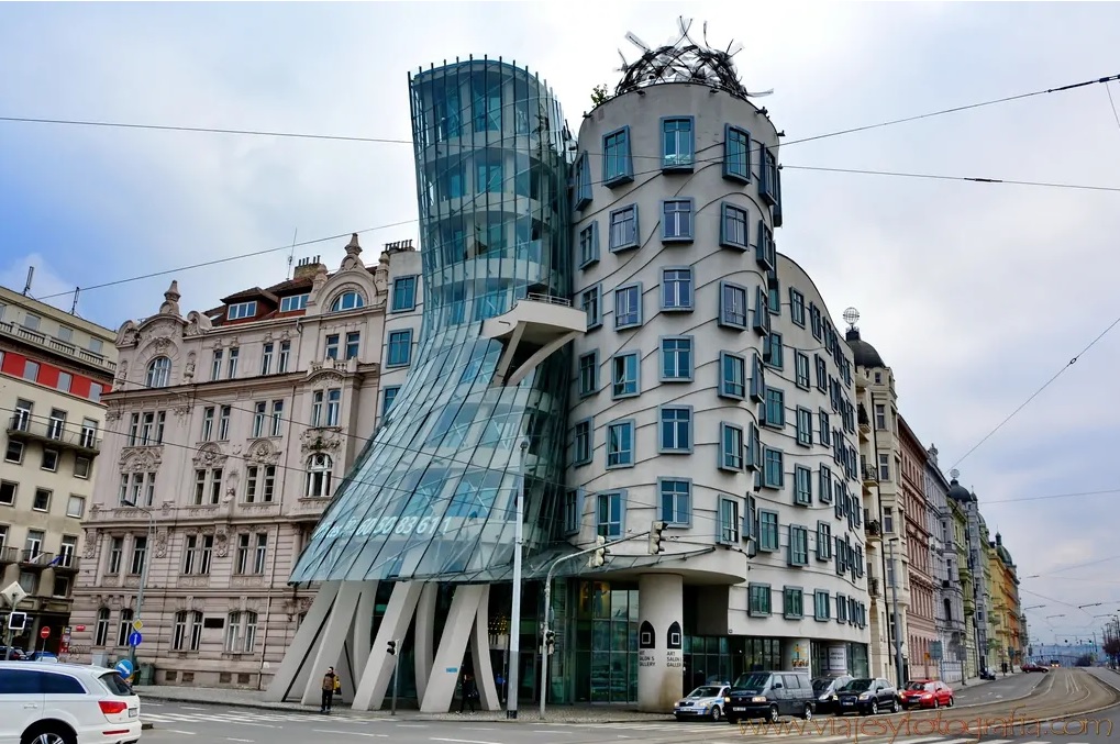 Ecléctico y decorativo. Combina influencias góticas, renacentistas y barrocas, con fachadas coloridas, detalles ornamentales y una clara intención de destacar.