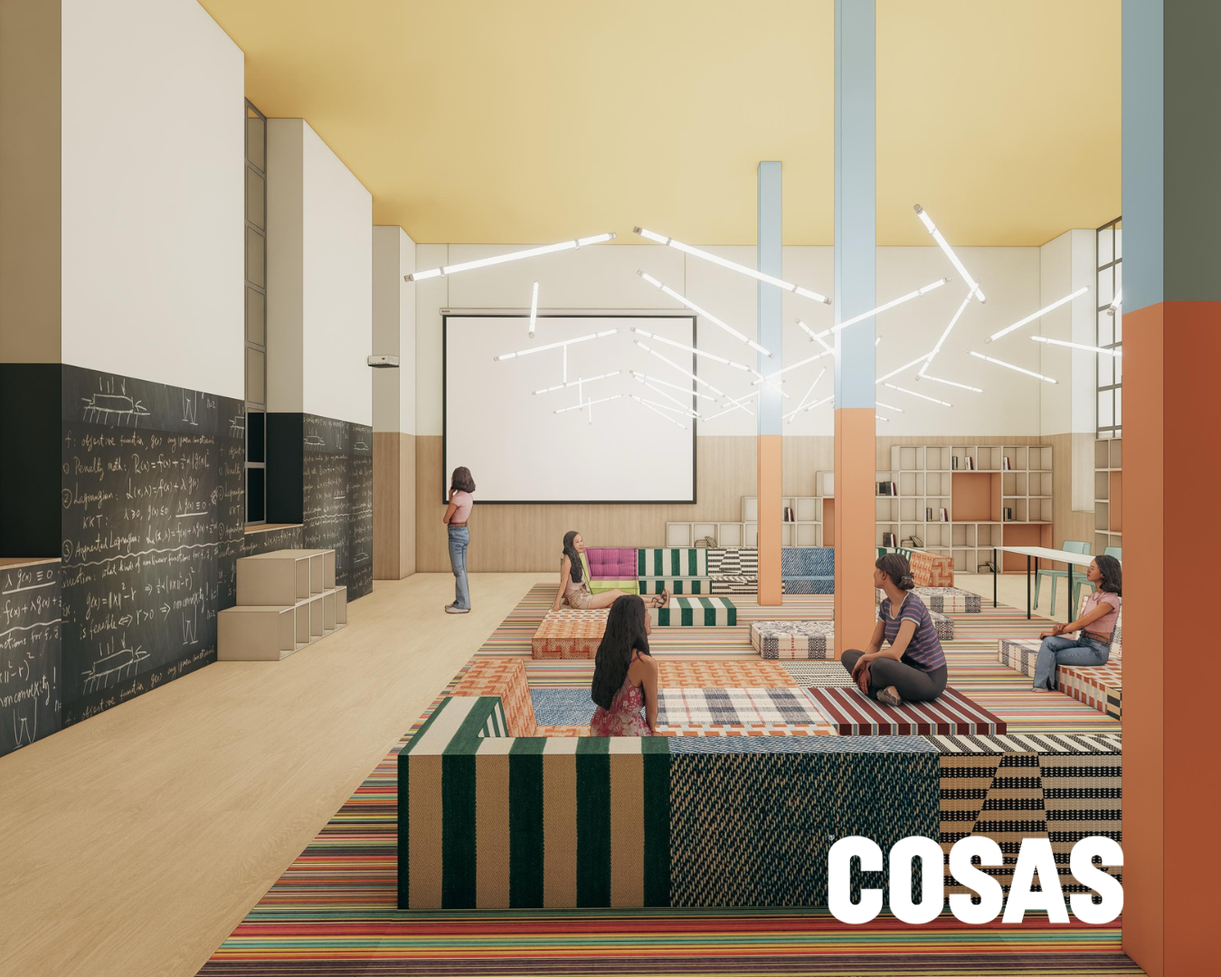Espacio diseñado para niñas de 6 a 18 años, con mobiliario modular a medida que permite configuraciones educativas, recreativas y comunitarias.
