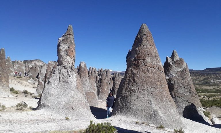 El bosque de piedras de Pampachiri presenta un conjunto de formaciones cónicas que se elevan sobre el terreno, como estructuras naturales, configurando un paisaje que remite a una lectura casi arquitectónica.