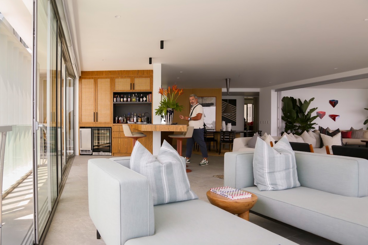 En Ancón, donde el ritmo de vida siempre ha estado ligado al mar y a la vida social del verano, este departamento diseñado por el arquitecto e interiorista Jordi Puig propone una reinterpretación de ese espíritu. El proyecto parte de una idea clara: crear un espacio cálido y funcional que invite a reunirse, conversar y disfrutar de la vista. La planta social se organiza como un gran ambiente continuo donde sala, comedor y bar conviven con naturalidad.