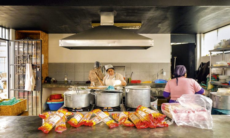 Entre ollas, tiempos y cuerpos distintos, la cocina se vuelve escenario colectivo del trabajo doméstico, donde lo productivo y lo afectivo conviven sin jerarquías visibles.