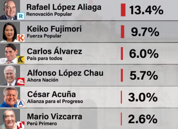 Según la última encuesta de Datum, Alfonso López Chau aparece en un empate técnico en el tercer lugar con 5.7%, junto con Carlos Álvarez (6%). En la encuesta de CPI, López Chau también ha subido al tercer lugar con 5.1%. En la encuesta de IEP también aparece tercero con 5%. Y en la página de apuestas Polymarket, por cierto, ya se ubica en el segundo lugar con 22%. Bien podría ser la cuota izquierdista que se colará entre los primeros lugares de las elecciones.
