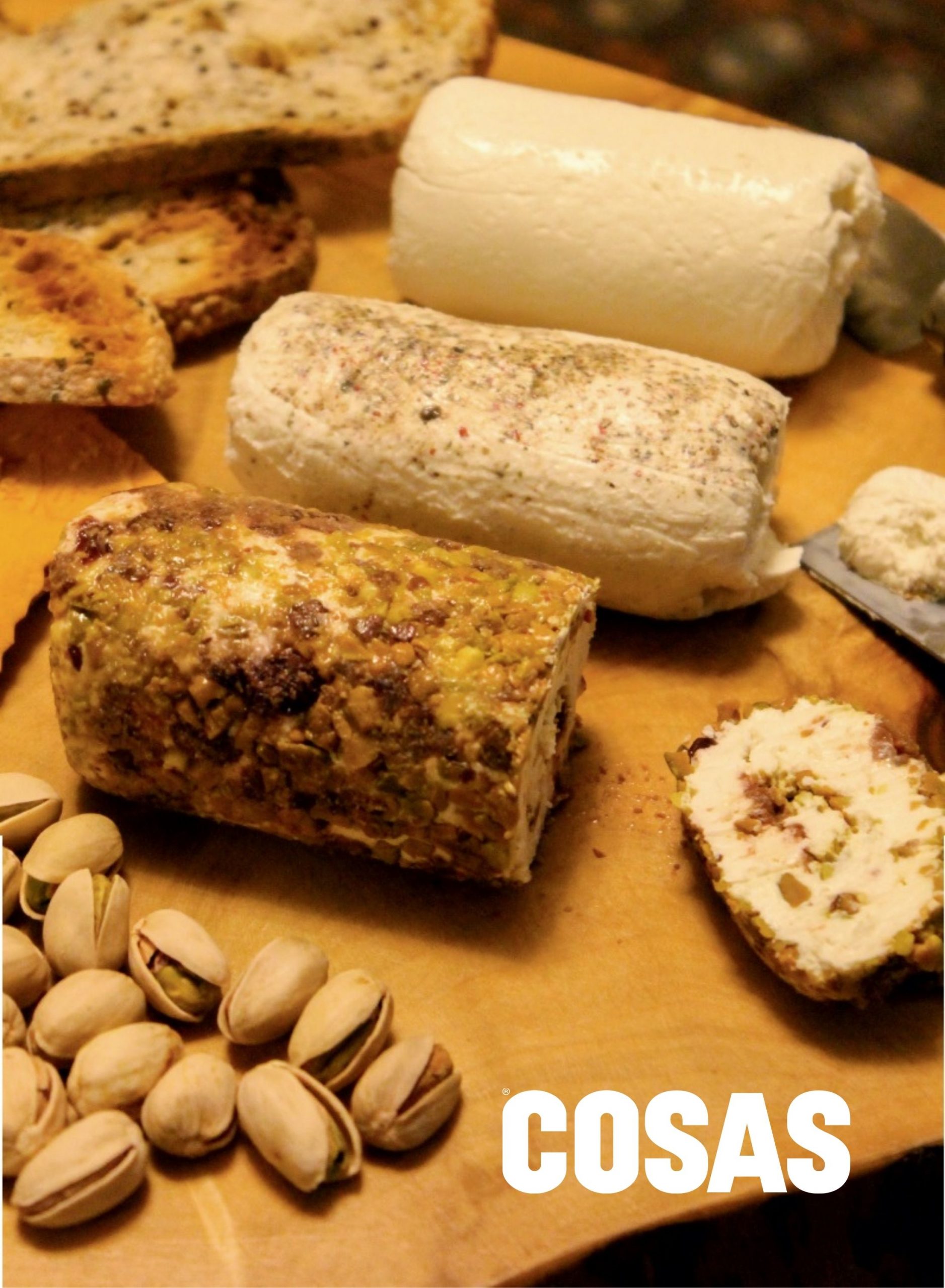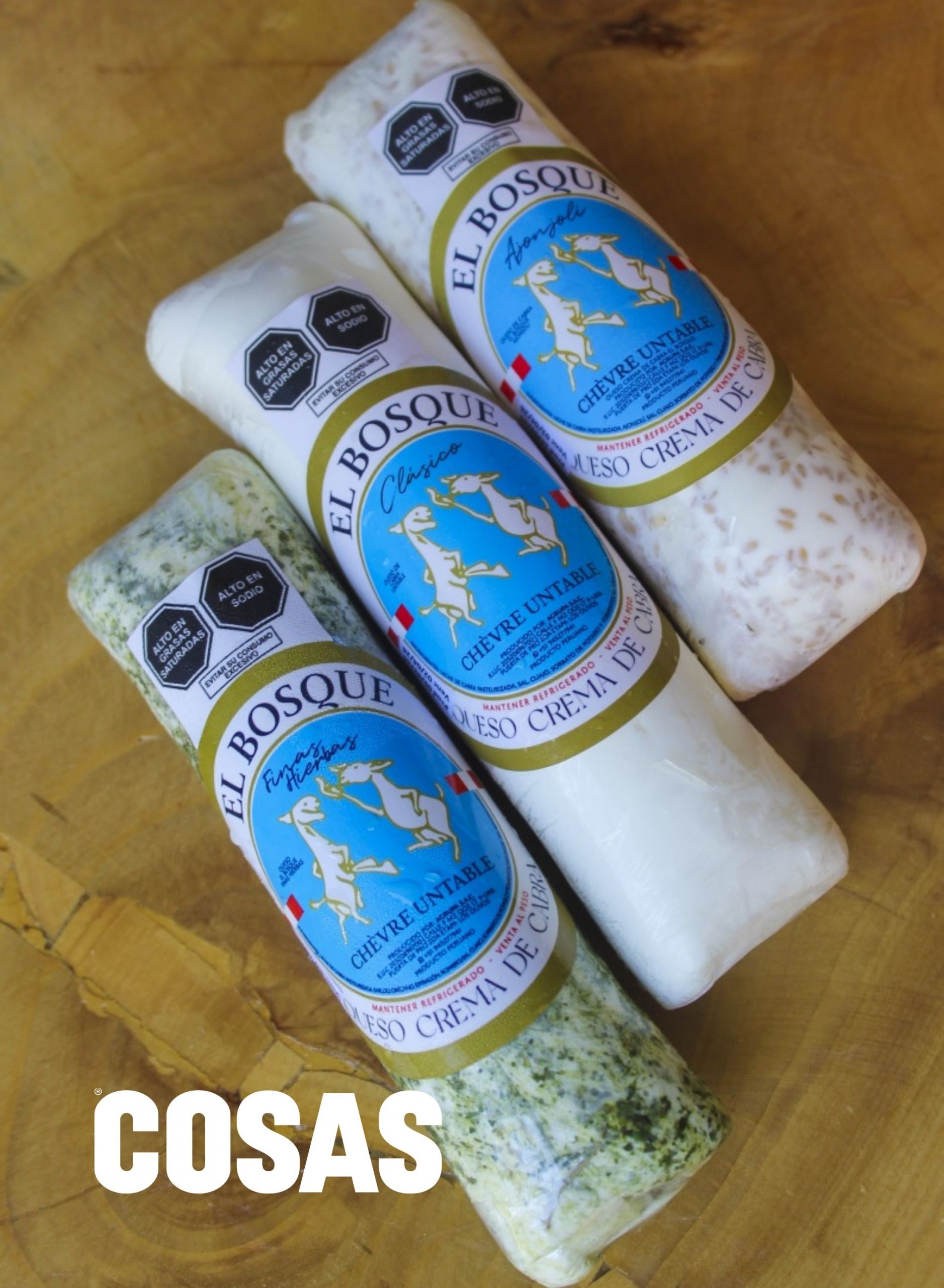 Los quesos de cabra de El Bosque exploran sabores como pistacho con cranberries, pimientos con Los quesos de cabra de El Bosque exploran sabores como pistacho con cranberries, pimientos con ajo, finas hierbas y ajonjolí.
