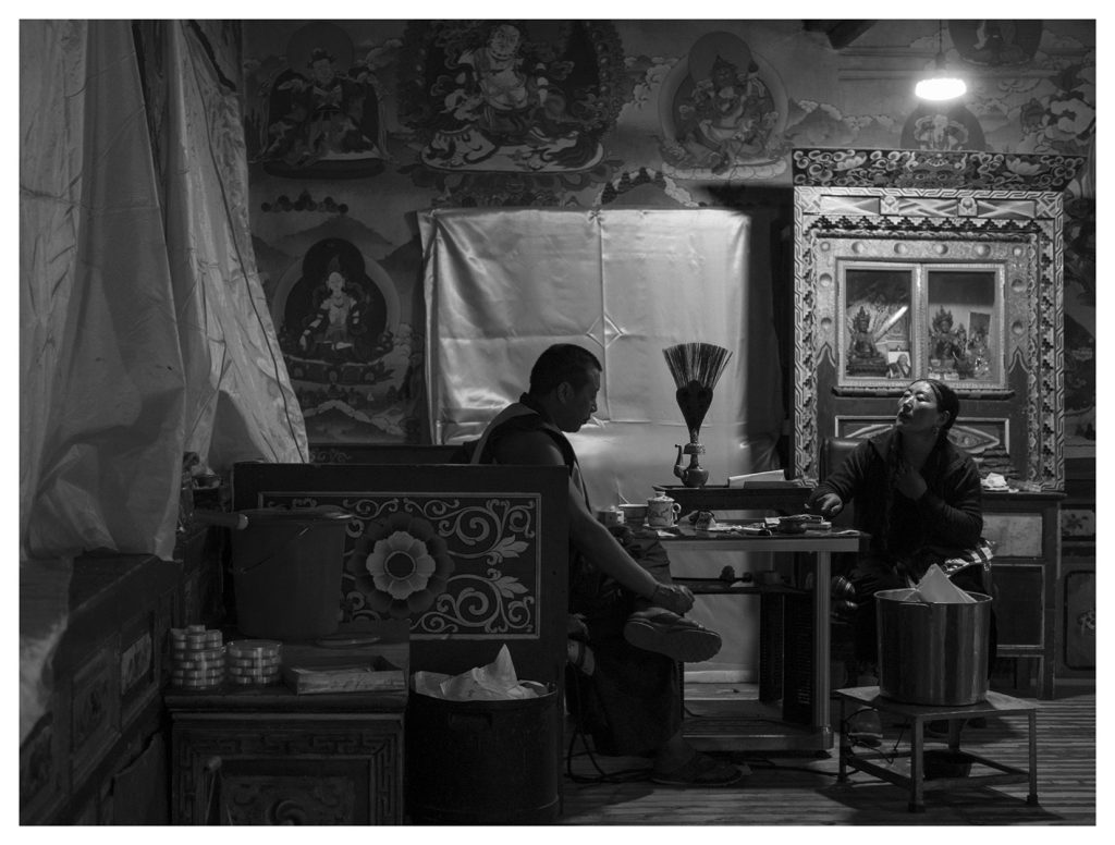La muestra fotográfica inaugural del artista y comunicador audiovisual Ian Ilbert presenta una selección de doce instantáneas, de pequeño y mediano formato, impresas sobre papel de algodón y láminas de bronce, de su paso por la ciudad de Kangding y el pueblo tibetano de Tagong, en Sichuan, provincia de China, en 2016. El trabajo surge de la búsqueda personal de sanación a través del reiki, una técnica ancestral practicada por los monjes como terapia para la curación emocional o física por medio de la imposición de manos.