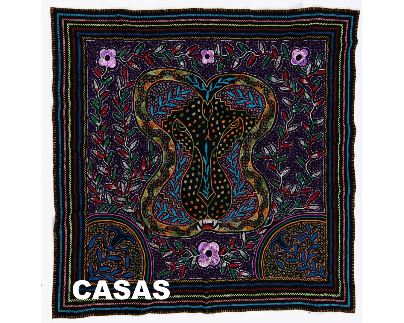 El mito, de Olinda Silvano (Paoyhan, 1969). Textil bordado a mano, 146,5 × 147 cm.