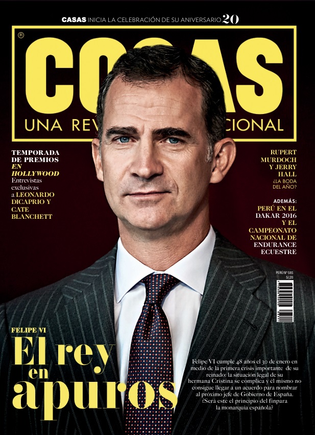 El 27 de enero, la portada fue para el rey Felipe VI, quien celebraba 48 años en medio de su primera gran crisis como monarca: el complicado escenario legal de su hermana, la infanta Cristina, y el bloqueo político para nombrar al nuevo jefe de Gobierno en España. La edición se completó con la temporada de premios en Hollywood y entrevistas exclusivas a Leonardo DiCaprio y Cate Blanchett.