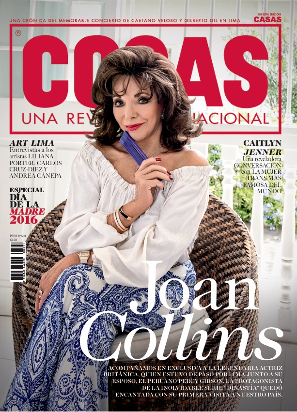 La siguiente portada fue para Joan Collins, a quien COSAS acompañó en exclusiva durante su paso por Lima junto a su esposo, el peruano Percy Gibson. En esa edición también se publicó una reveladora entrevista con Caitlyn Jenner, la mujer trans más famosa del mundo.