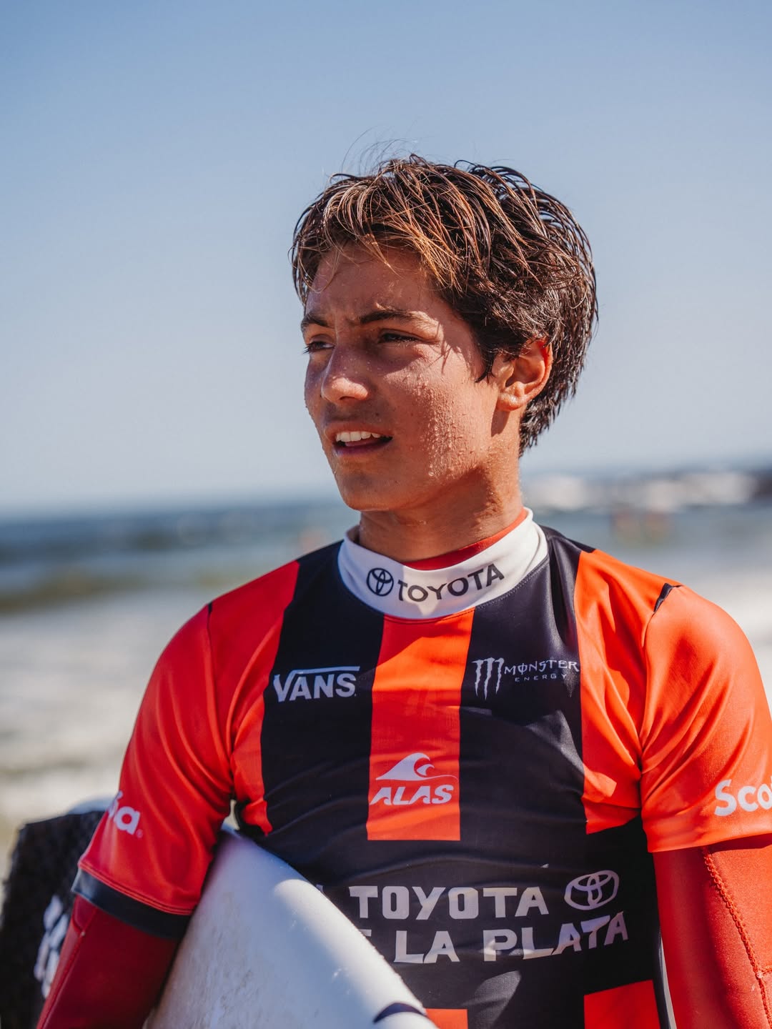 Bastián Arévalo llega a Australia como uno de los nombres más consolidados del equipo. Fue semifinalista del Mundial Junior ISA en Punta Rocas, además de bicampeón sudamericano y campeón del Olas Pro Tour, resultados que lo posicionan entre los referentes del surf juvenil peruano.