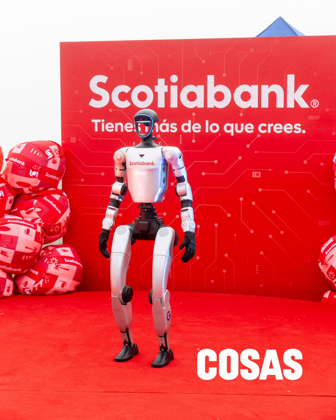 Scotiabank presentó por primera vez a su robot humanoide y a su mascota en la playa Las Lagunas