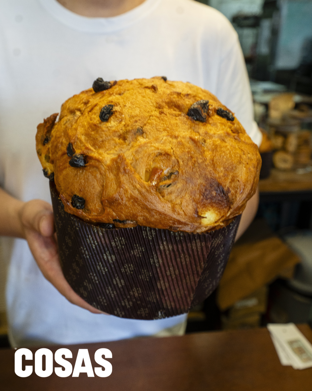 Panettone artesanal recién salido del horno, elaborado con masa madre, ralladuras de cítricos, frutas confitadas naturales y vainilla amazónica empleada en la competencia internacional.