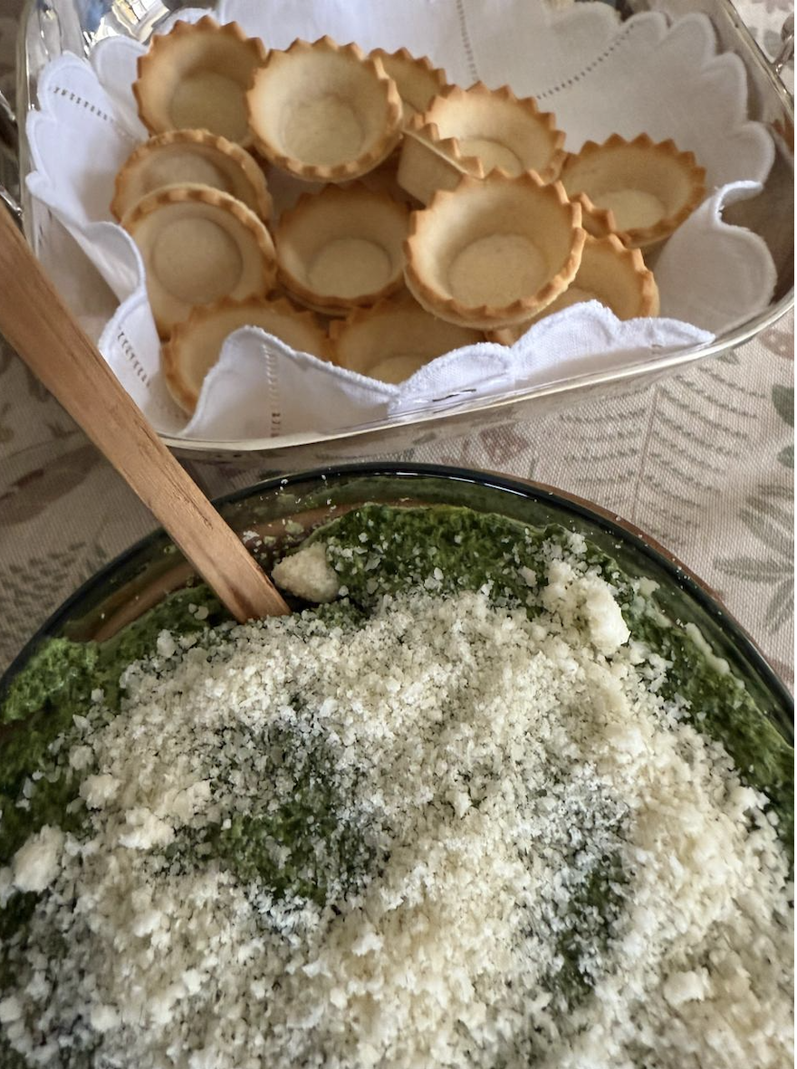 Espinaca, queso crema y parmesano, ideal con hojarascas o tartaletas.