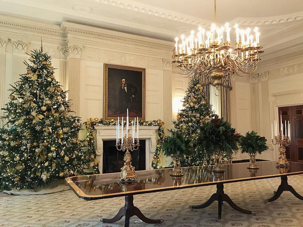 «La Casa Blanca brilla en la temporada de Navidad«, escribió la esposa de Donald Trump y responsable del diseño decorativo, en su cuenta oficial de Twitter.