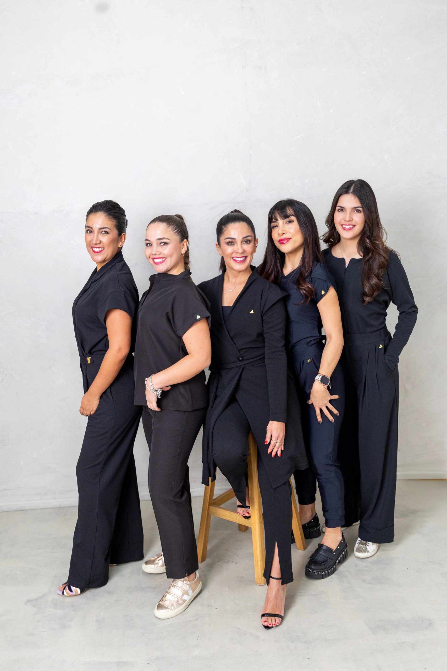 Verónica Alcedo Pastor, Andrea Tejada, Maritza Alcedo, Antonella Geldes y Luciana de Las Casas Alcedo, quienes lucen los uniformes médicos de Cereixa que combinan estilo y comodidad.