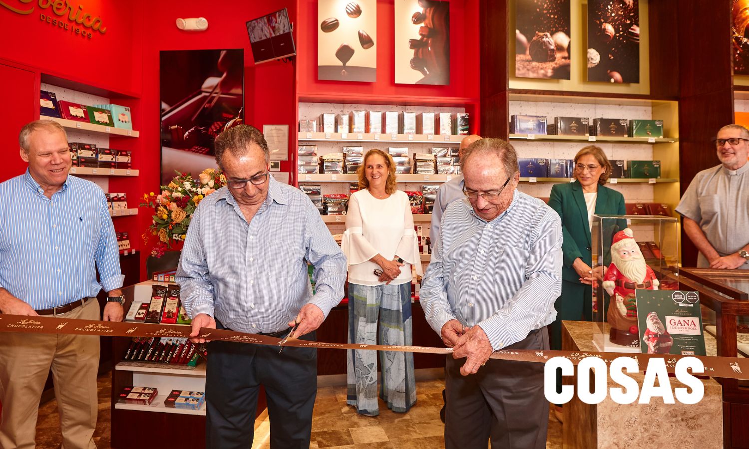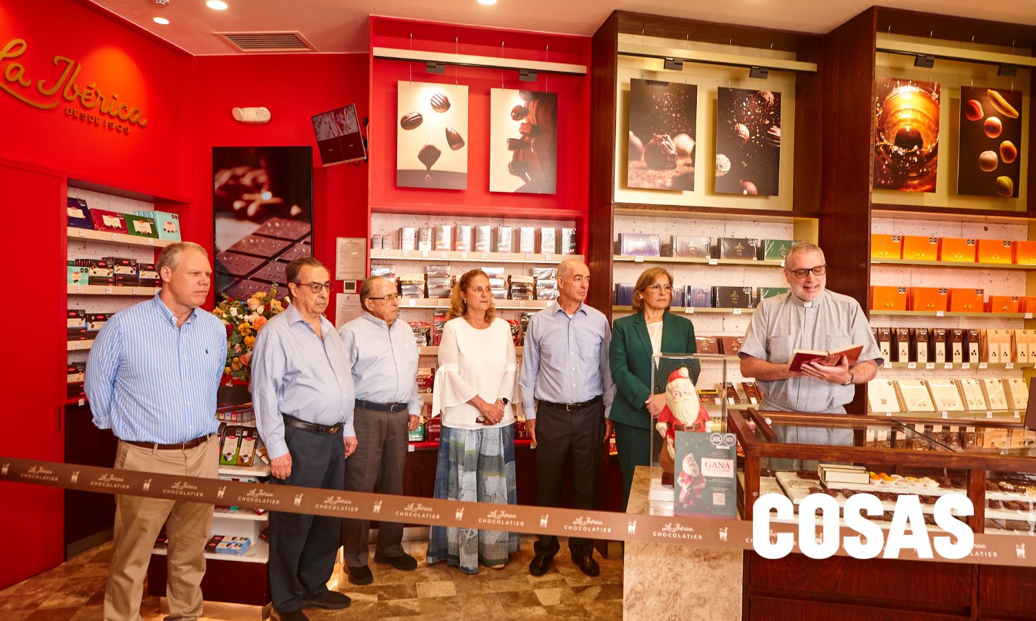 Padre Javier Len, hace la bendición de la nueva tienda de La Ibérica Chocolatier.
