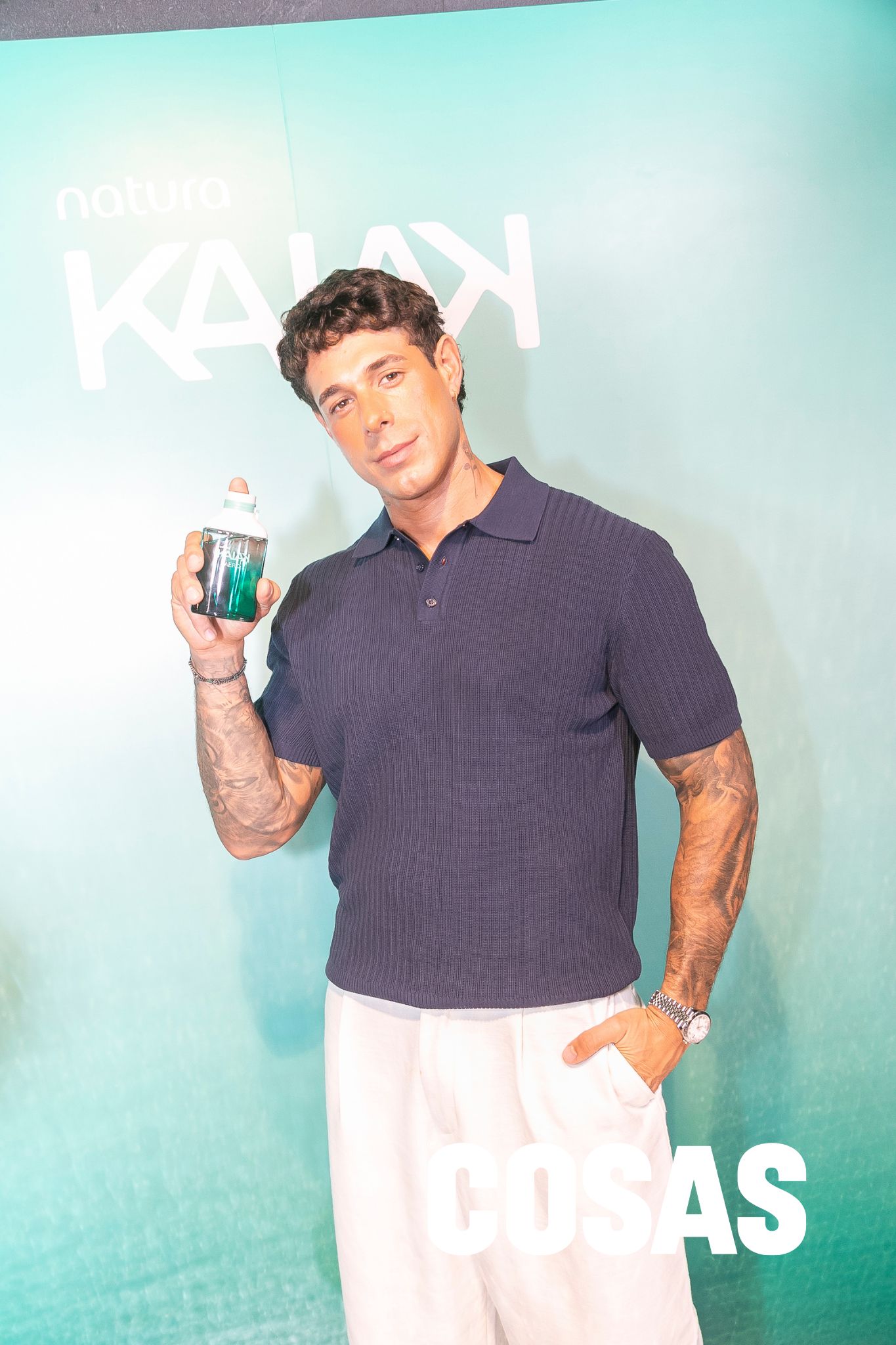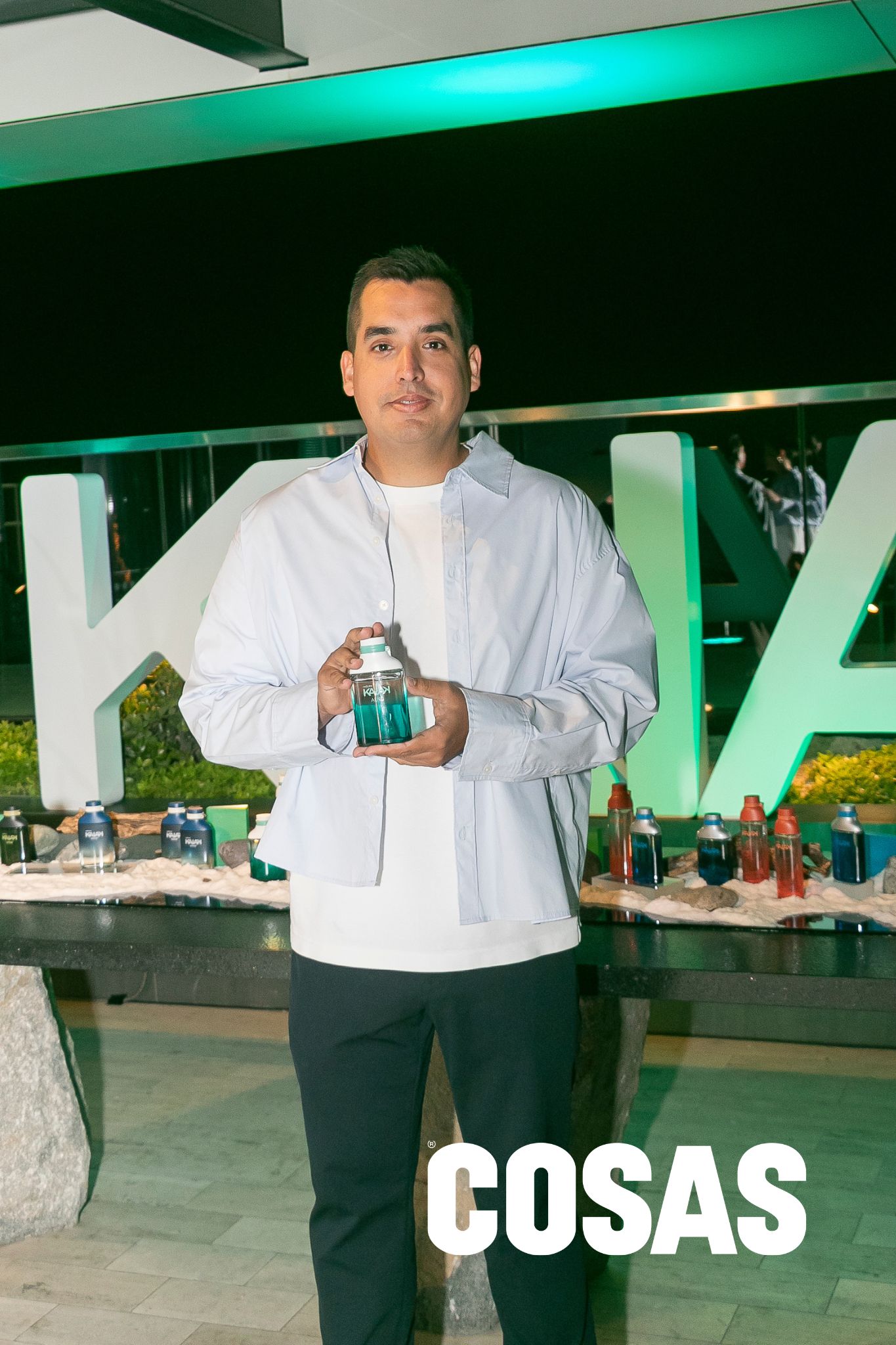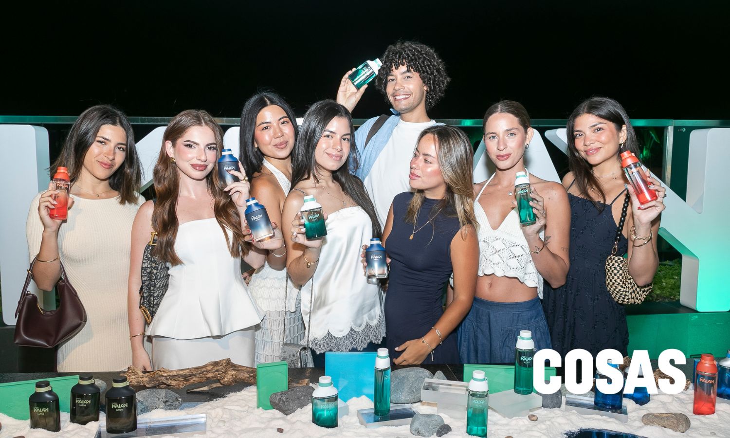 En el espacio, un juego de luces marcaba el camino hacia el backing de la marca, donde los influencers posaban con la fragancia. Al centro, una mesa exhibía todas las versiones de Kaiak, tanto para hombre como para mujer, con el protagonista de la temporada: Kaiak Aero. “Hoy tenemos el relanzamiento de un perfume muy importante para Kaiak, que es Kaiak Aero. Es un perfume herbal y aromático, que nos invita a vivir esta vida plena, al aire libre, deportiva”, explicó Ibáñez.