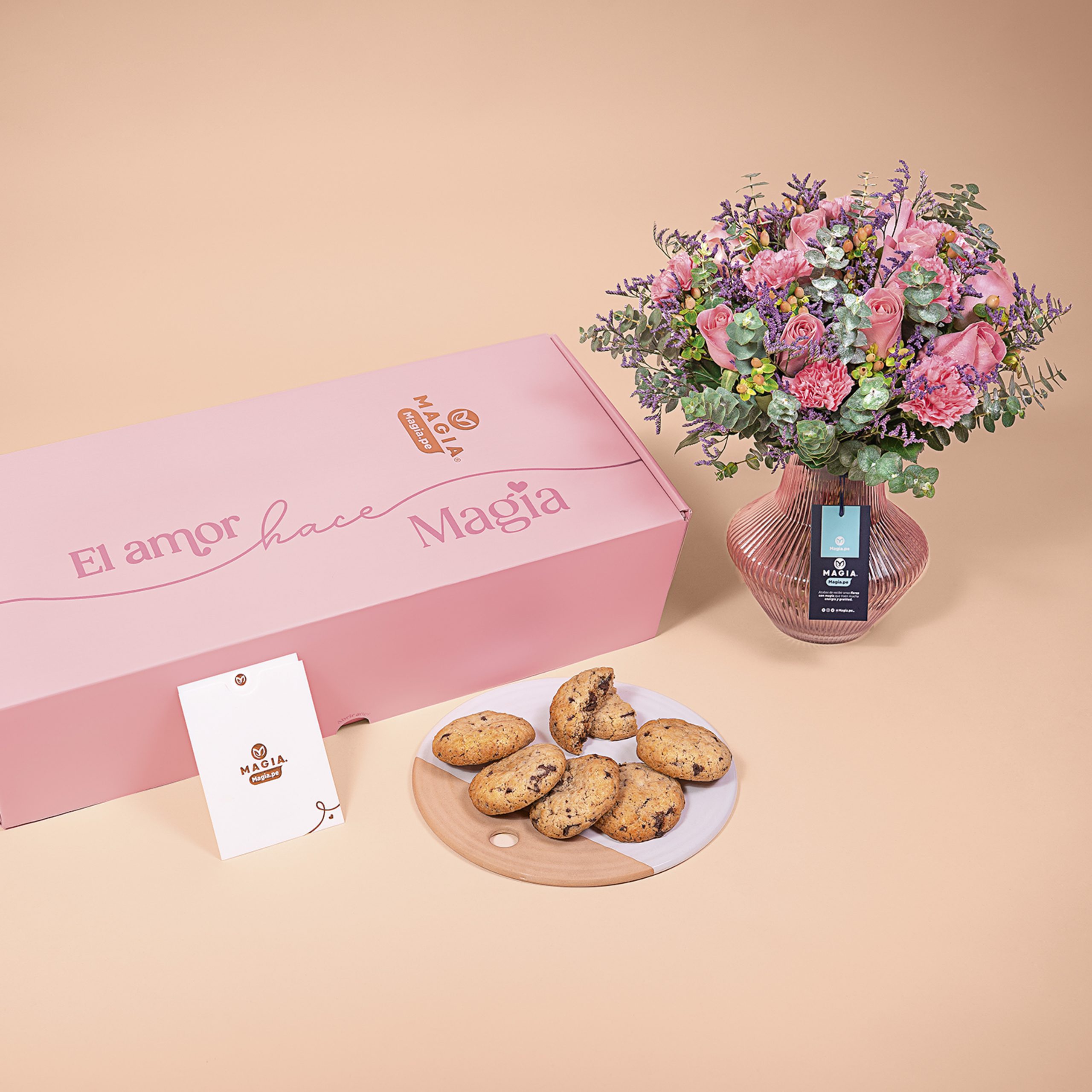 Pack Magia.pe que combina flores superpremium y cookies artesanales en una experiencia inolvidable, una joya para provocar wow auténtico: un regalo que emociona de verdad desde el primer instante siempre.