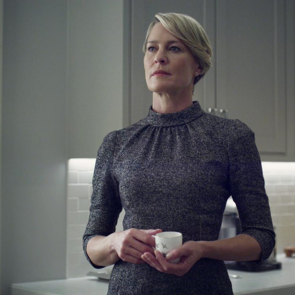 Las mujeres que son líderes de Estado, como Angela Merkel y Hillary Clinton, suelen decantarse el clásico sastre y la blusa. Es algo muy utilitario, no obstante, llegado el fin de la serie no parecían ser opciones suficientes para el personaje de Wright.