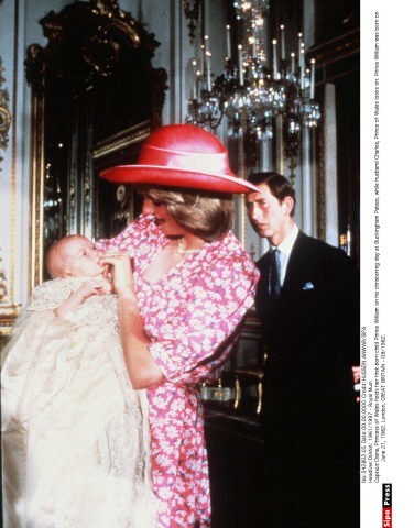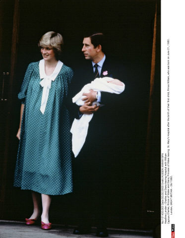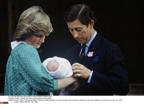 El príncipe Carlos y la princesa Diana a la salida del hospital con su hijo William.