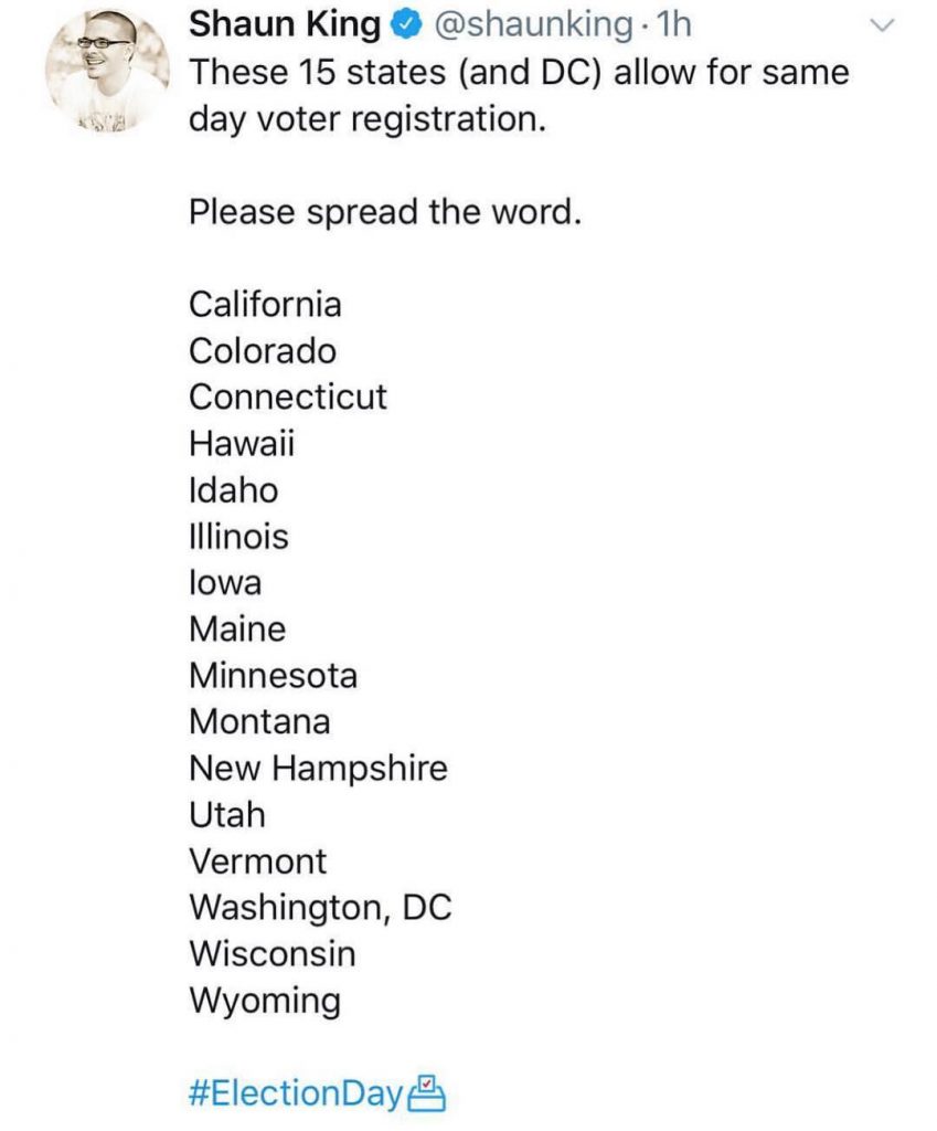 La diva de Barbados ha hecho varias publicaciones este martesinstando a sus seguidores a ir a votar. En una primera publicación, se aprecia una foto con los estados donde aún se podía registrar la gente para votar. «¡Es el día de las elecciones en América! El día más importante para el resto de sus vidas… Si estás cansado de quejarte del estado, del país y del gobierno, levántate y haz algo al respecto. No tienes excusa, ¡No es demasiado tarde para registrarte!», declaró.