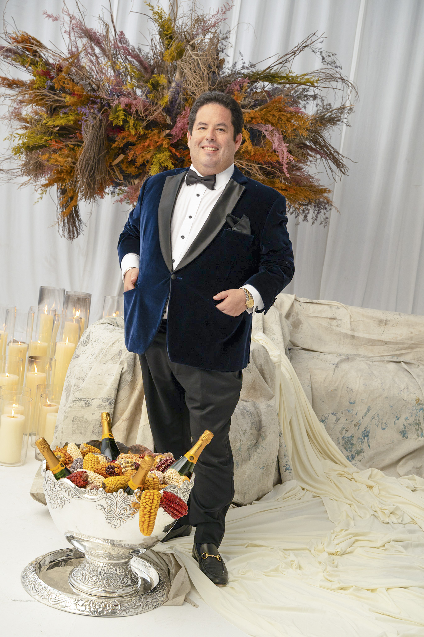 Para Arturo de Noriega, diseñar eventos es un ejercicio de escucha. “Todo nace de los clientes. Leo lo que quieren, incluso cuando no lo dicen”, asegura. Con esa filosofía, puede recuperar tradiciones antiguas como la torre de champán, las tortas de siete pisos o el anillo escondido en el pastel, hoy apreciadas por las nuevas generaciones. Su trabajo en el Perú también le ofrece un lenguaje único: “Me gusta mezclar lo colonial con lo contemporáneo, que haya contraste sin estridencia”. Su sello está en la fusión equilibrada: entre lo tradicional y lo moderno. Aunque reconoce que algunos pedidos no siempre coinciden con sus gustos, no impone reglas. Su reto es traducir deseos en conceptos memorables.