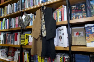Libros, piezas de arte y objetos personales conforman el universo íntimo de su escritorio.
